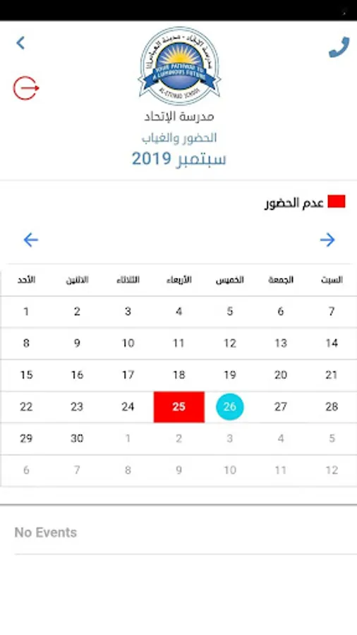 (Attendance and Absence): This feature allows parents to see the schedule of absence of their children during each month with the reason for the absence and justification