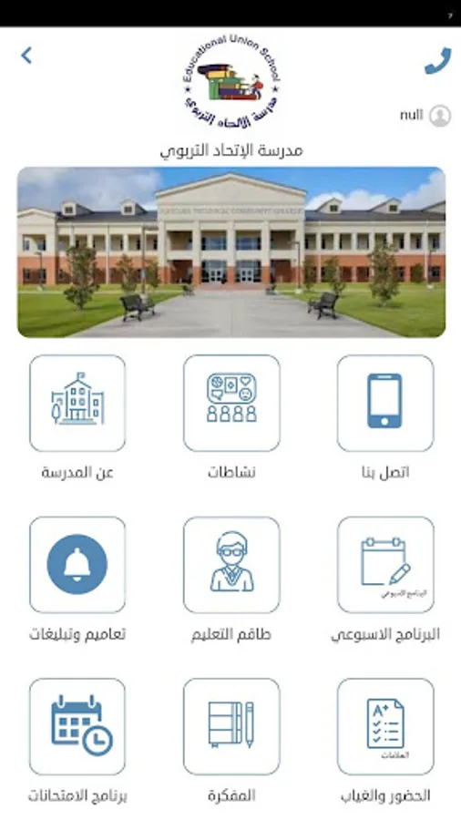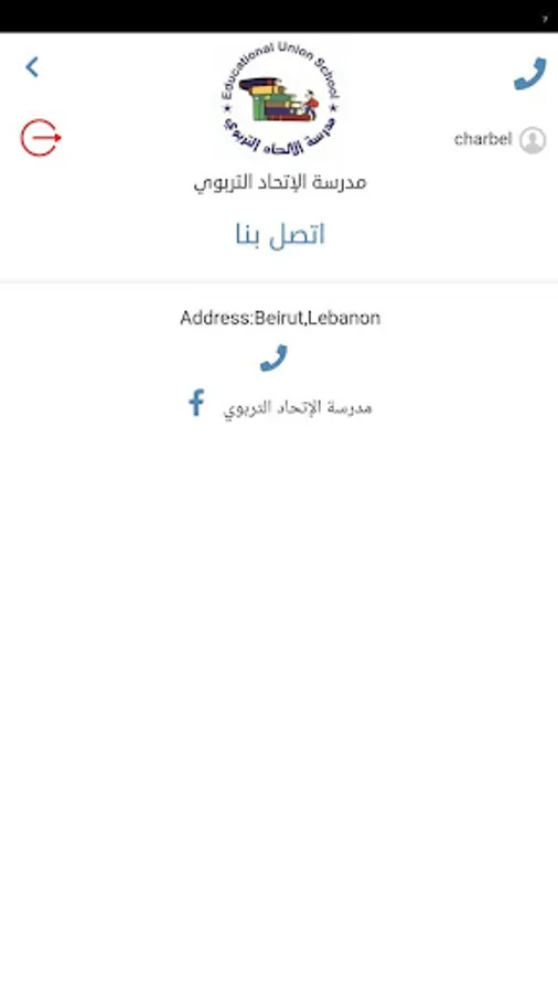 (Contact Us): Shows all the means of communication available with the school from the phone number, email and Facebook account
