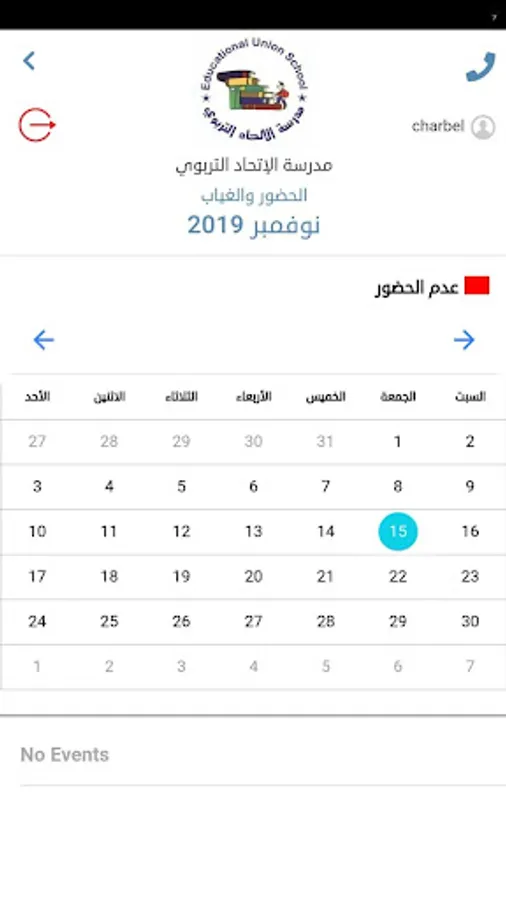 (Attendance and Absence): This feature allows parents to see the schedule of absence of their children during each month with the reason for the absence and justification