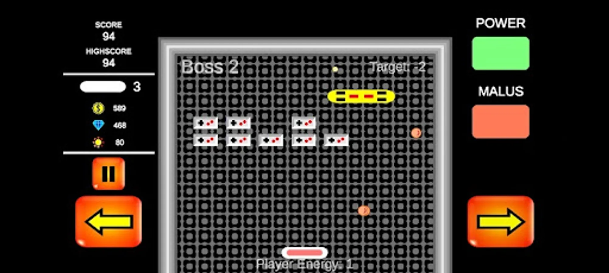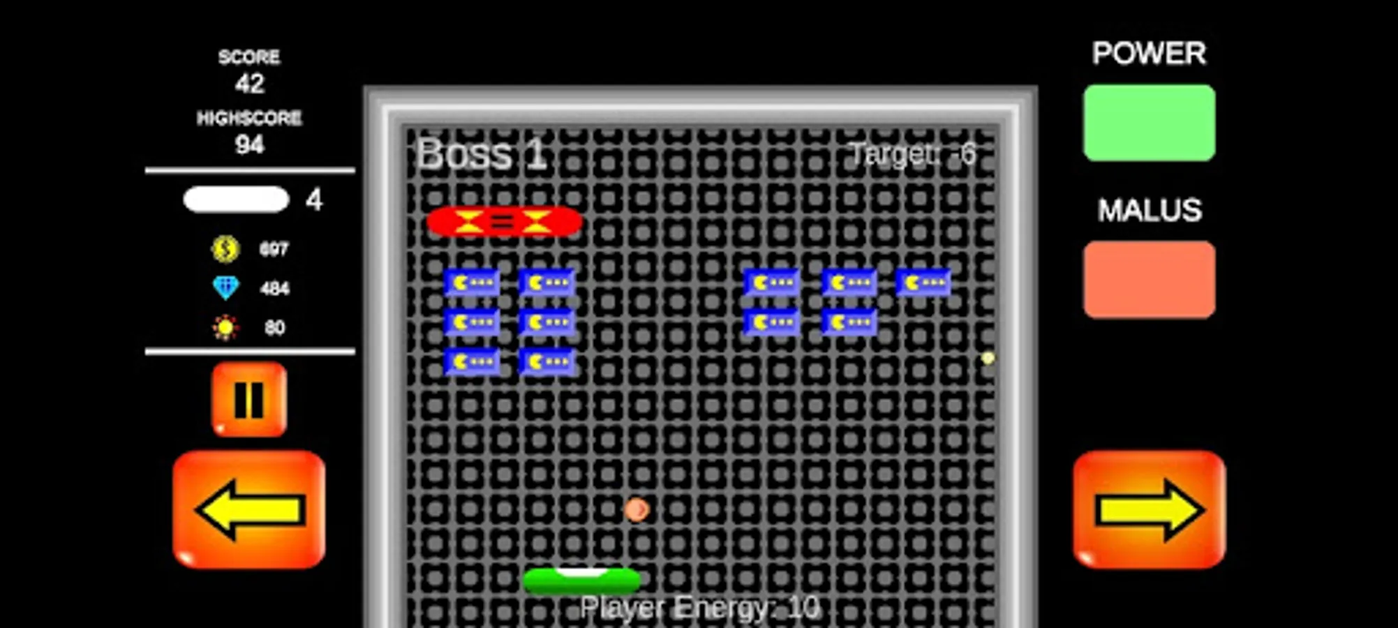 Alternative version of the well-known brick breaker game arkanoid, ArkONEoid consists in repeatedly hitting a single brick to overcome the various levels and reach the final boss: