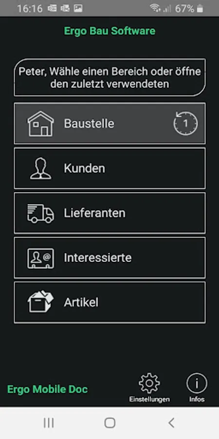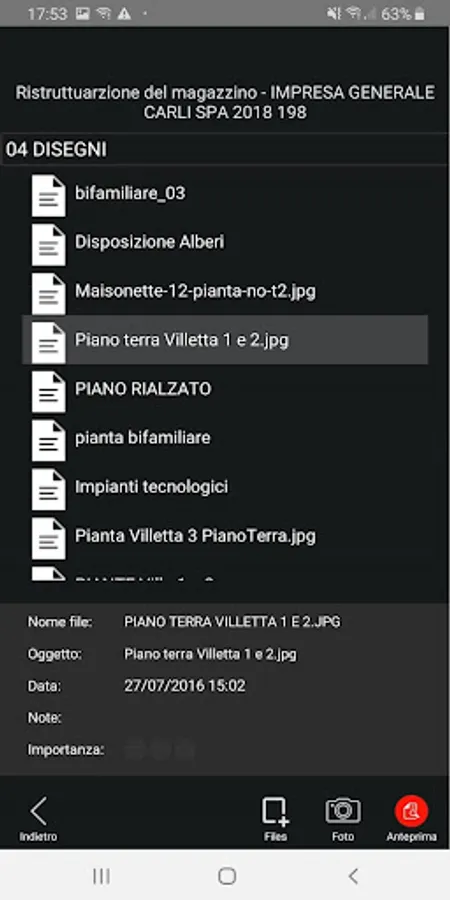 It allows online access to documents from customer, supplier, construction sites and articles archives and the saving of instant photos or photos from the gallery in any folder.