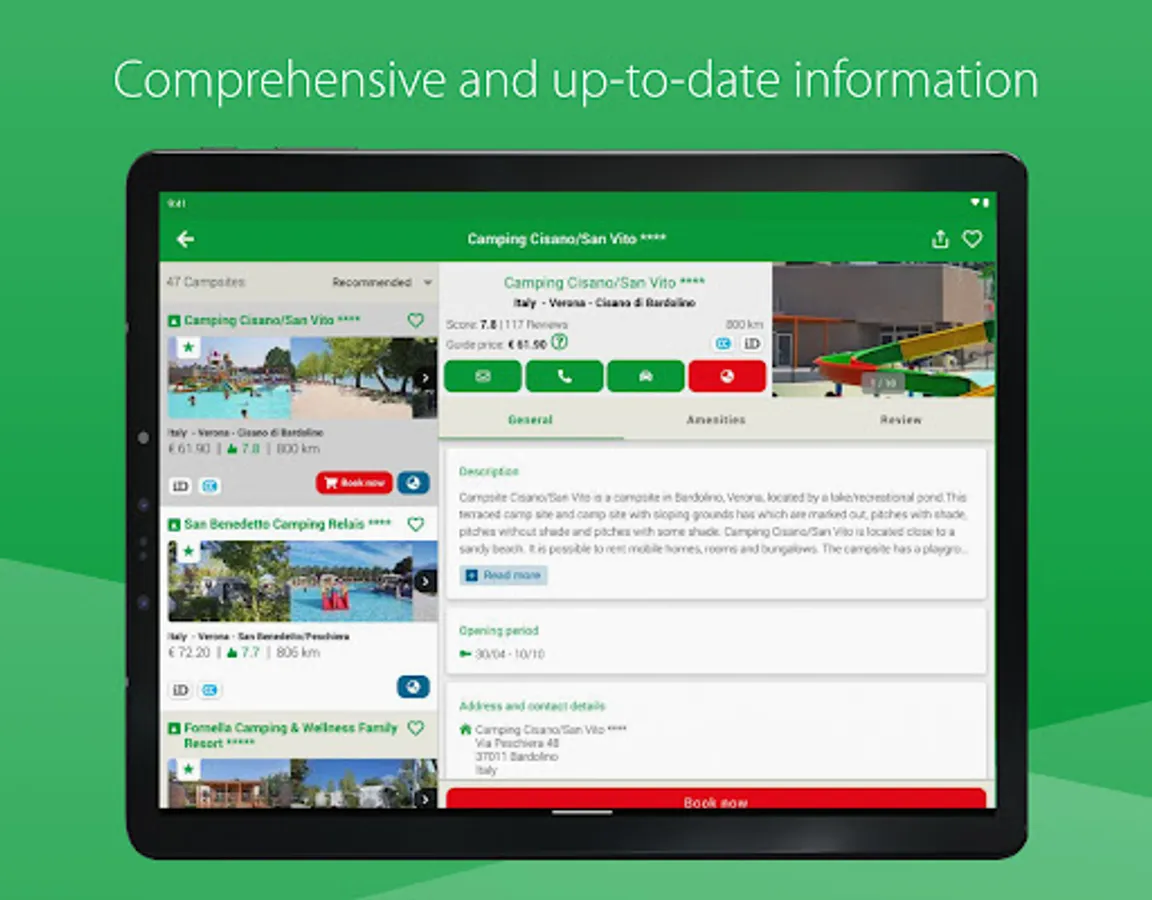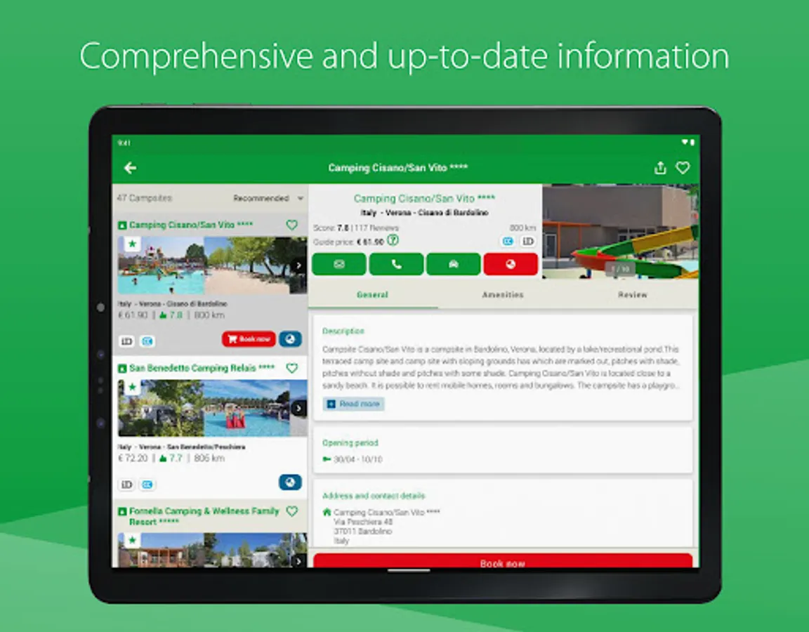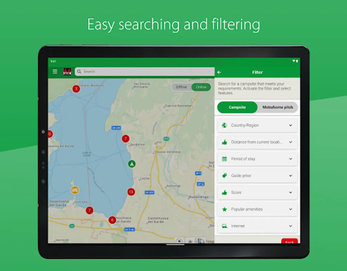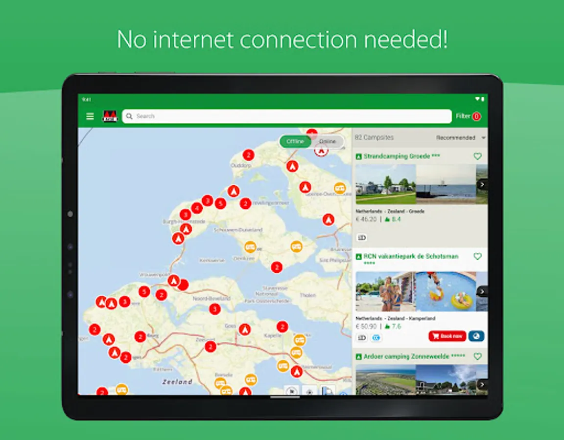 Also handy: all information that is downloaded can be used without an internet connection, which makes the app ideal for use while on the road. What’s more, the app works quickly and easily, and you can consult the information on three devices at the same time. Are you going out with your motorhome? Then you can also download packages with motorhome pitches, all inspected by true motorhome owners.