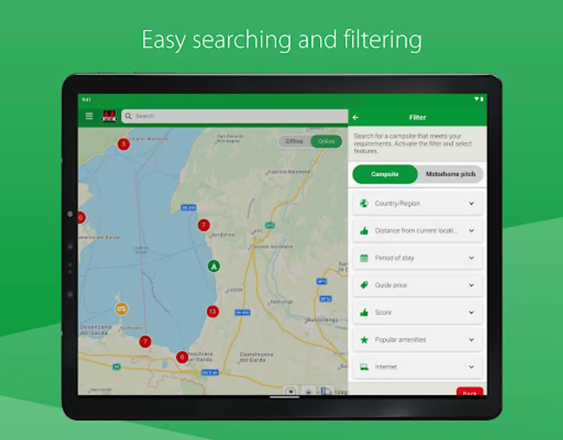 * 9,300 European campsites in one handy app