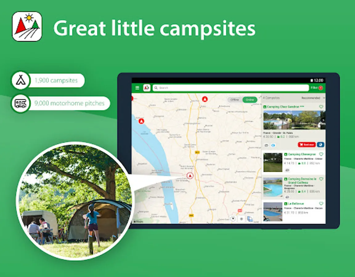 Also handy: all information that is downloaded can be used offline and this makes the app ideal for use while on the road. What’s more, the app works quickly and easily, and you can consult the information on three devices at the same time. The app has more than 1,900 of this kind of campsites in Europe. Are you going out with your motorhome? The app can be expanded with information about more than 9,000 motorhome pitches, all inspected by true motorhome owners.