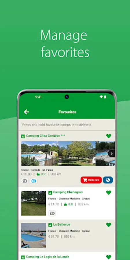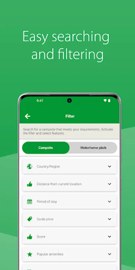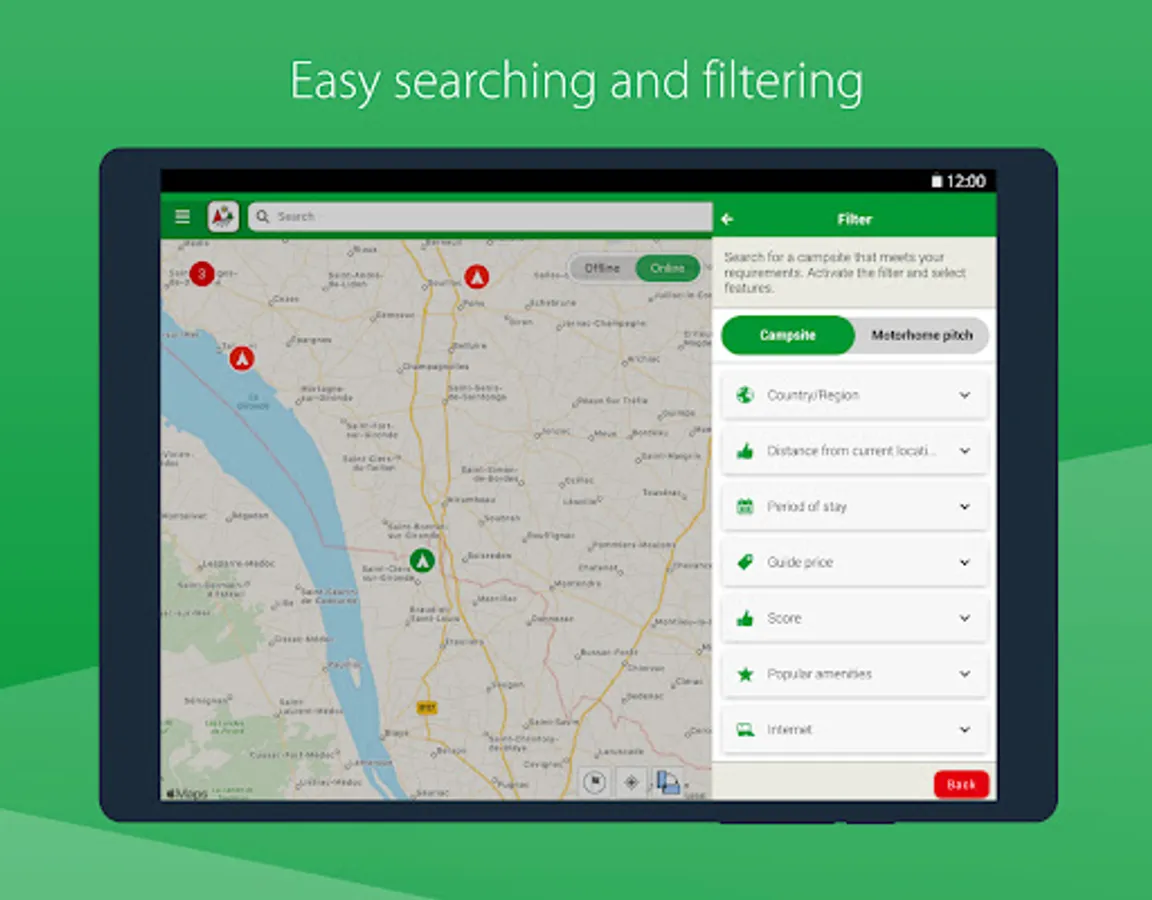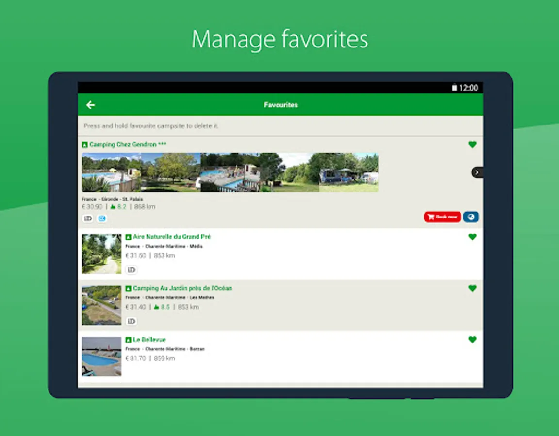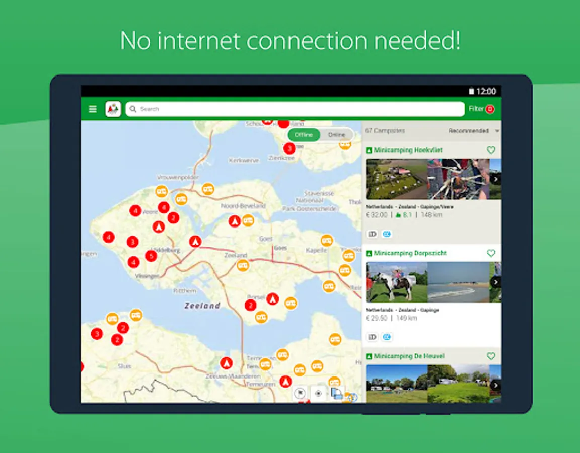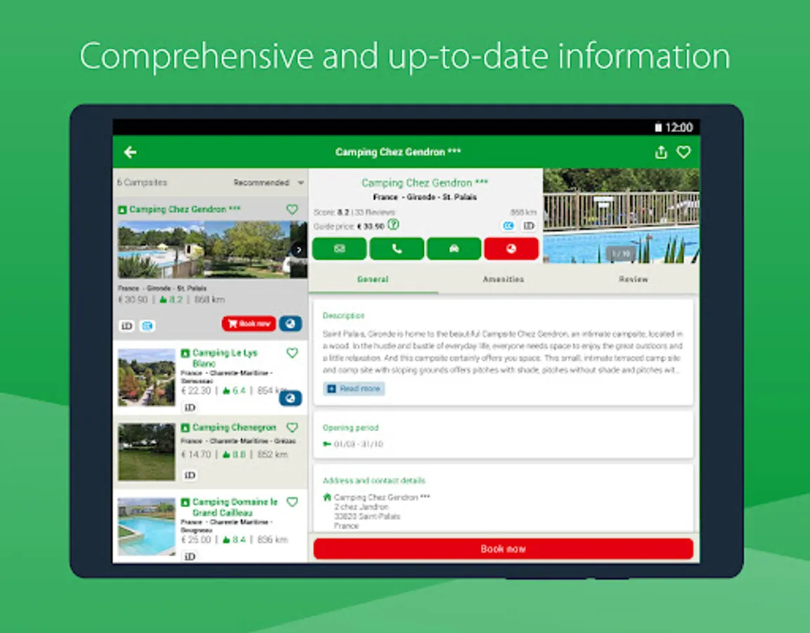 Thanks to handy filters, it is very easy to find a place to stay and more and more campsites have made it possible for you to use the app to book a pitch directly. Or save your favourite campsites so you can easily find them again later. Thanks to the free updates, including amendments and new campsite reviews, the app is always up to date.