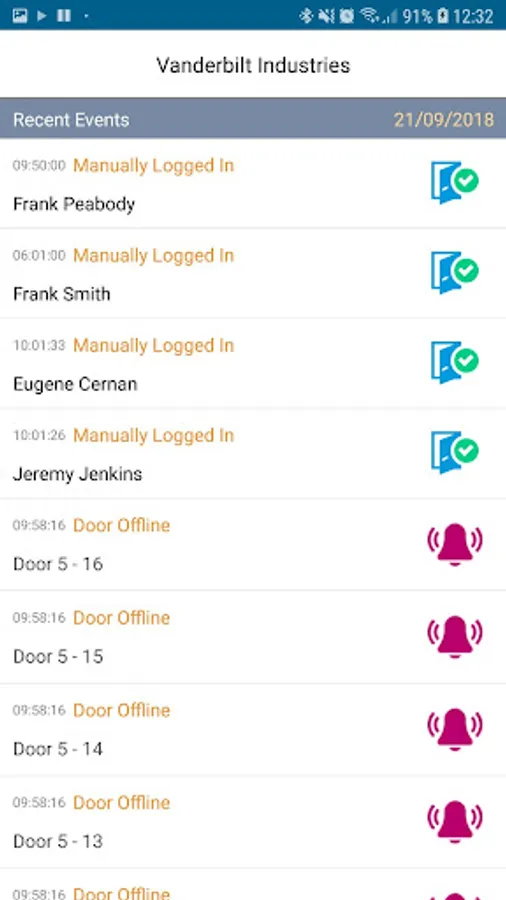 Customer Features: the customer can view the live status of doors, perform actions on individual doors such as lockdown and unlock doors, Enable and disable users, take user photograph with Mobile app, View live system event and alarms and run a roll call report of who is on site