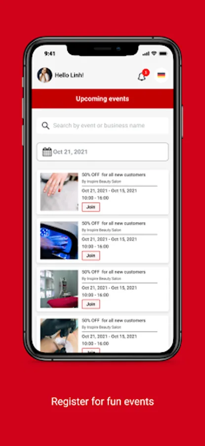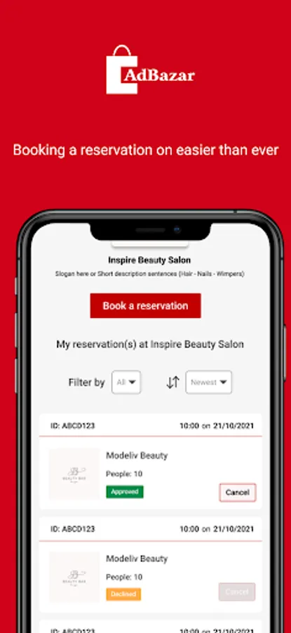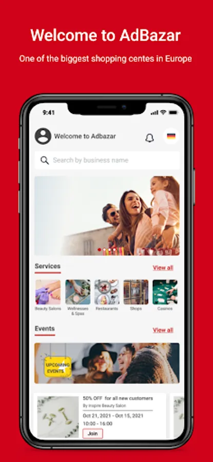 - Ermöglicht Nutzern die Reservierung von Dienstleistungen, die von Unternehmen im Handelszentrum angeboten werden, wie Restaurants, Spas, Nagelstudios, Friseure, Hotels, ...