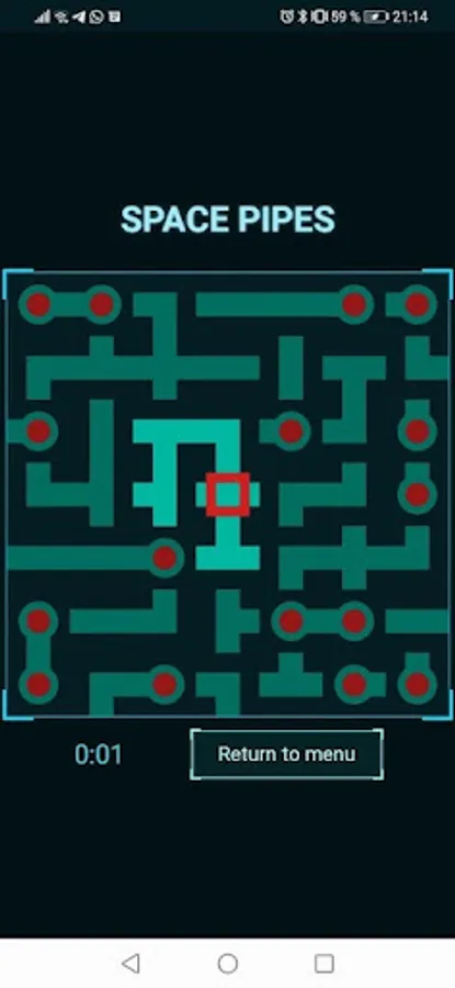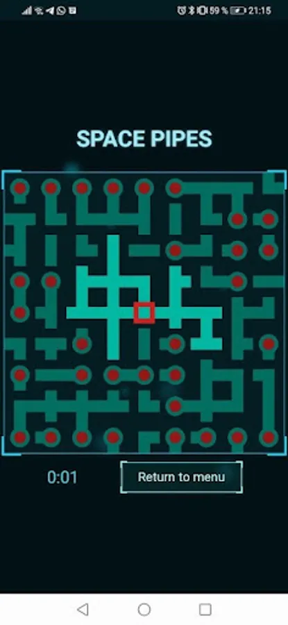 Space Pipes is a puzzle game that consists on rotating pieces in order to connect all of them to the center piece. There are two modes, with a square grid (netwalk) and with an hexagonal grid.