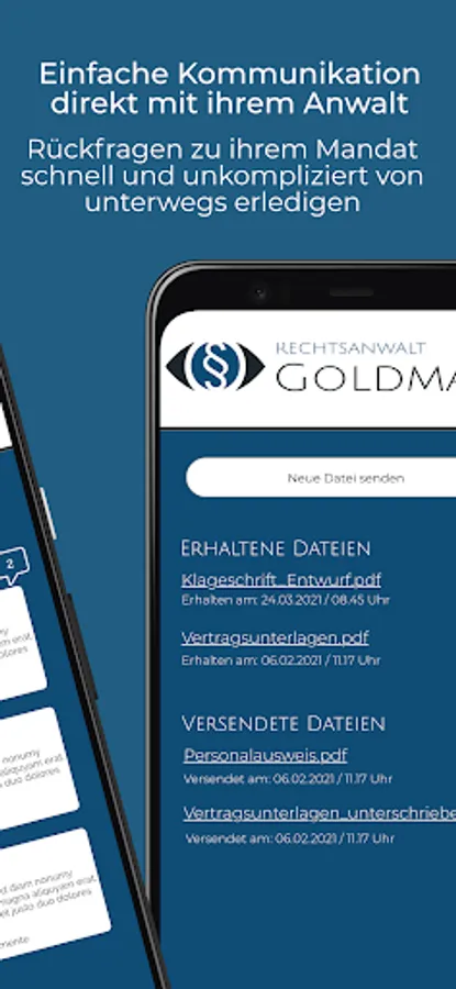 Send messages to your lawyer quickly and easily while on the move. Use your smartphone as a PDF scanner and transfer documents directly via the app.