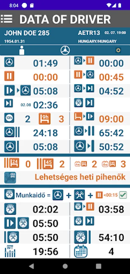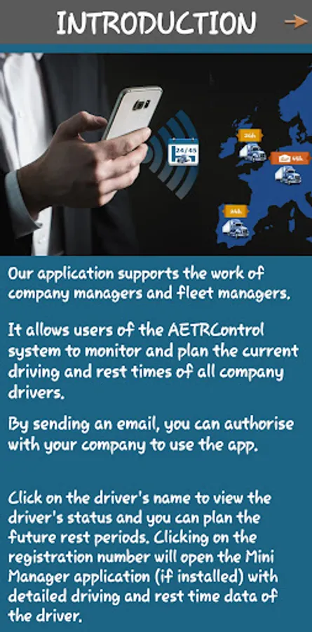 Fleet managers can check the current status of their drivers' driving and rest times.