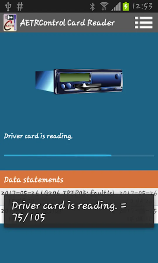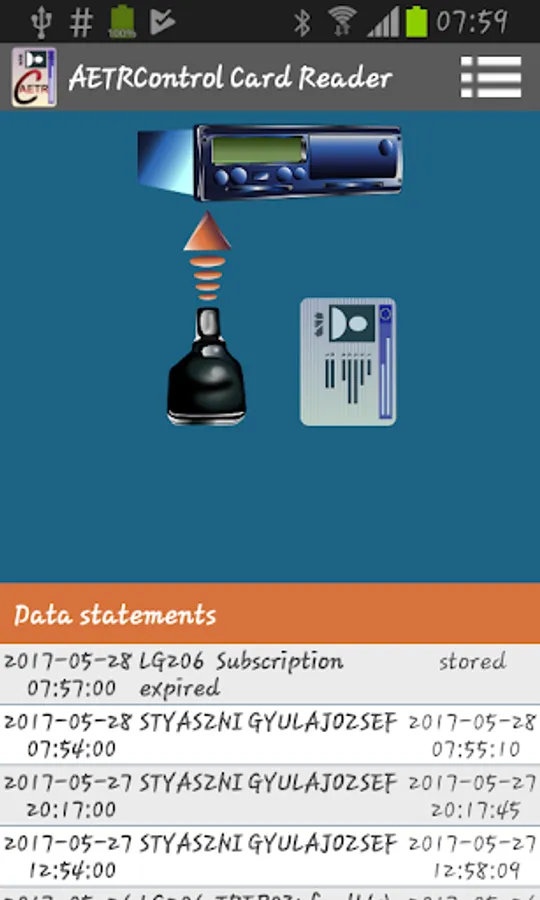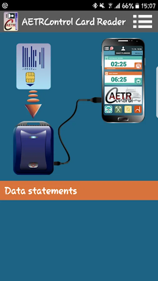 Reading first and second generation driver card (USB / Bluetooth, AETRControl Front device), storing and uploading driver information to www.aetrcontrol.eu.