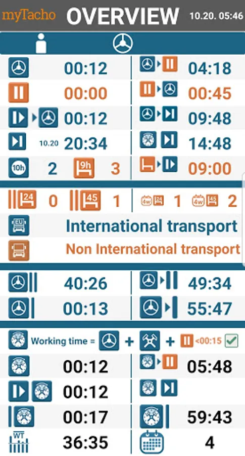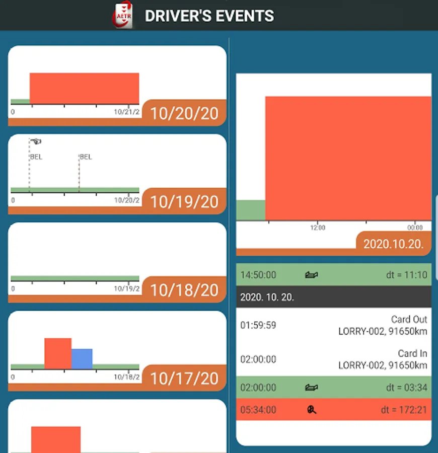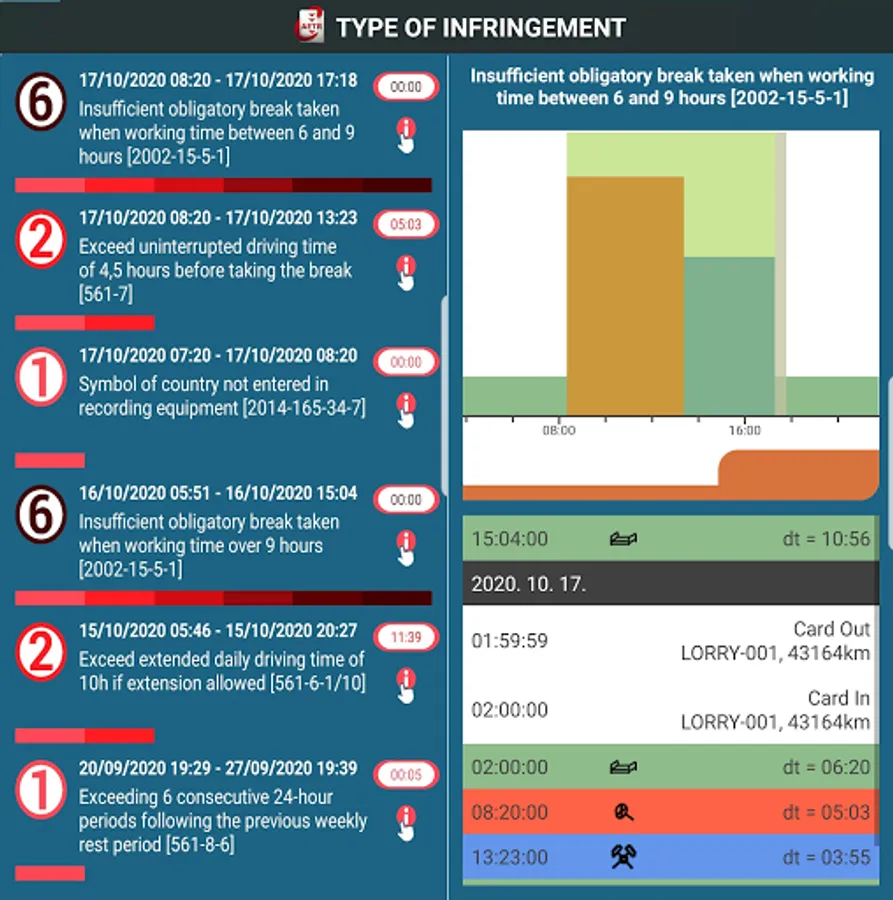 After uploading the driver card, the system automatically evaluates your driving and rest times.