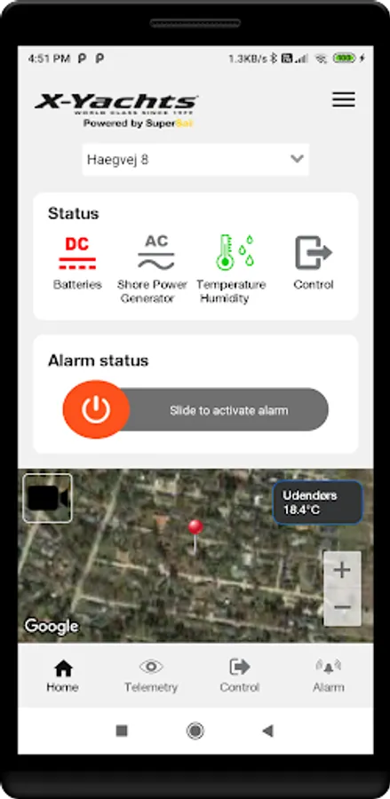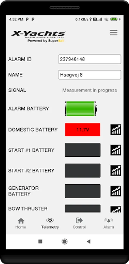 From the X-Yachts control panel, all monitoring of the Yacht can be controlled. Further it is possible to remote control up to 6 units in the Yacht (e.g. heat, light, cooler).