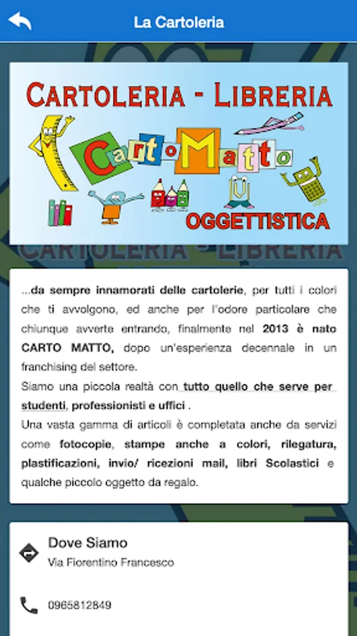 Always in love with stationeries, for all the colors that surround you, and also for the particular smell that anyone feels upon entering, finally after ten years of experience in a BUFFETTI franchise, CARTO MATTO was born in 2013.