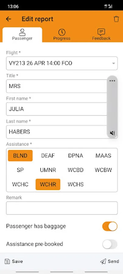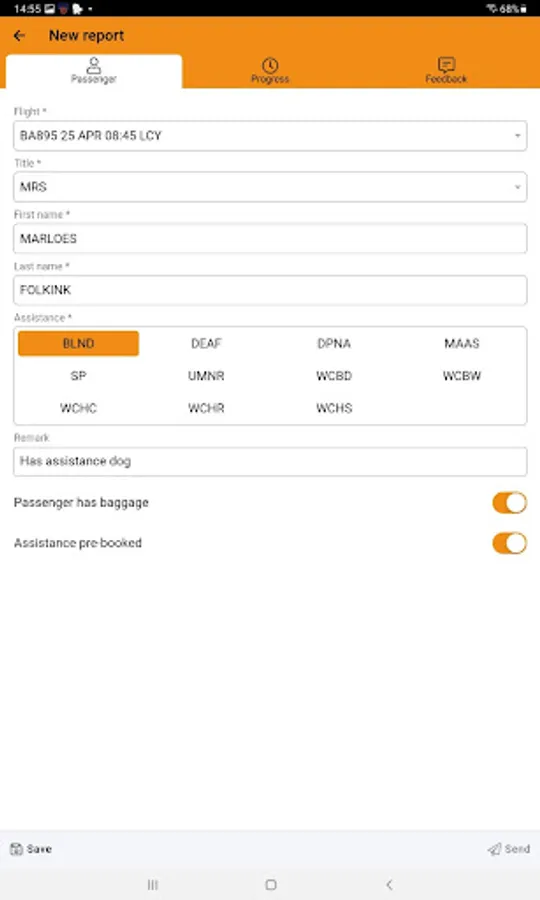 The Passenger Assistance App is designed to improve the passengers assistance process at regional airports. Users are able to view assistance requests, report on the passenger journey and collect passenger feedback on a mobile device. The app can be used at any airport with the AirLink AODB platform installed.