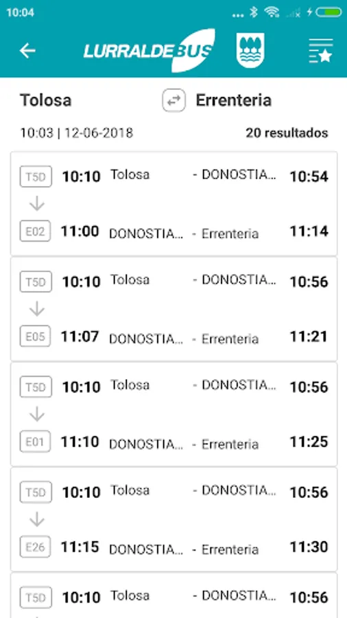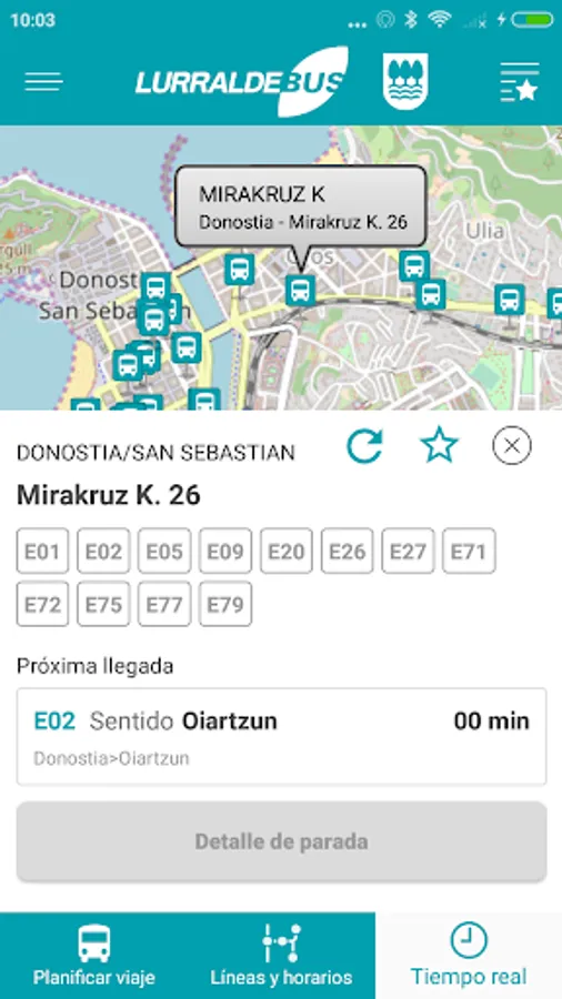 Access real time information for all Lurraldebus services and find the next departure times for the corresponding services at each of the stops in the Lurraldebus network.