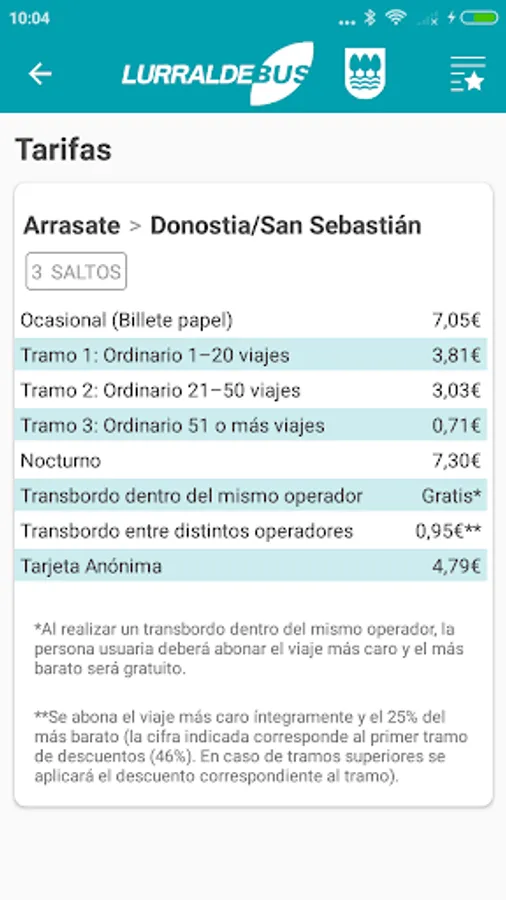 - Consult the schedule of a line with the hours of passing through all the stops and visualize the route on the map.