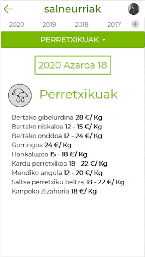 Aplikazio hau doakoa da, euskeraz eta gaztelaniaz landu da, eta modu paregabea da azokan asteazkenero finkatzen diren prezioen gaineko informazioa eskuratzeko (erabiltzaileek ostegunero, goizeko 9etarako, prest izango dute euren telefonoetan informazio hau).