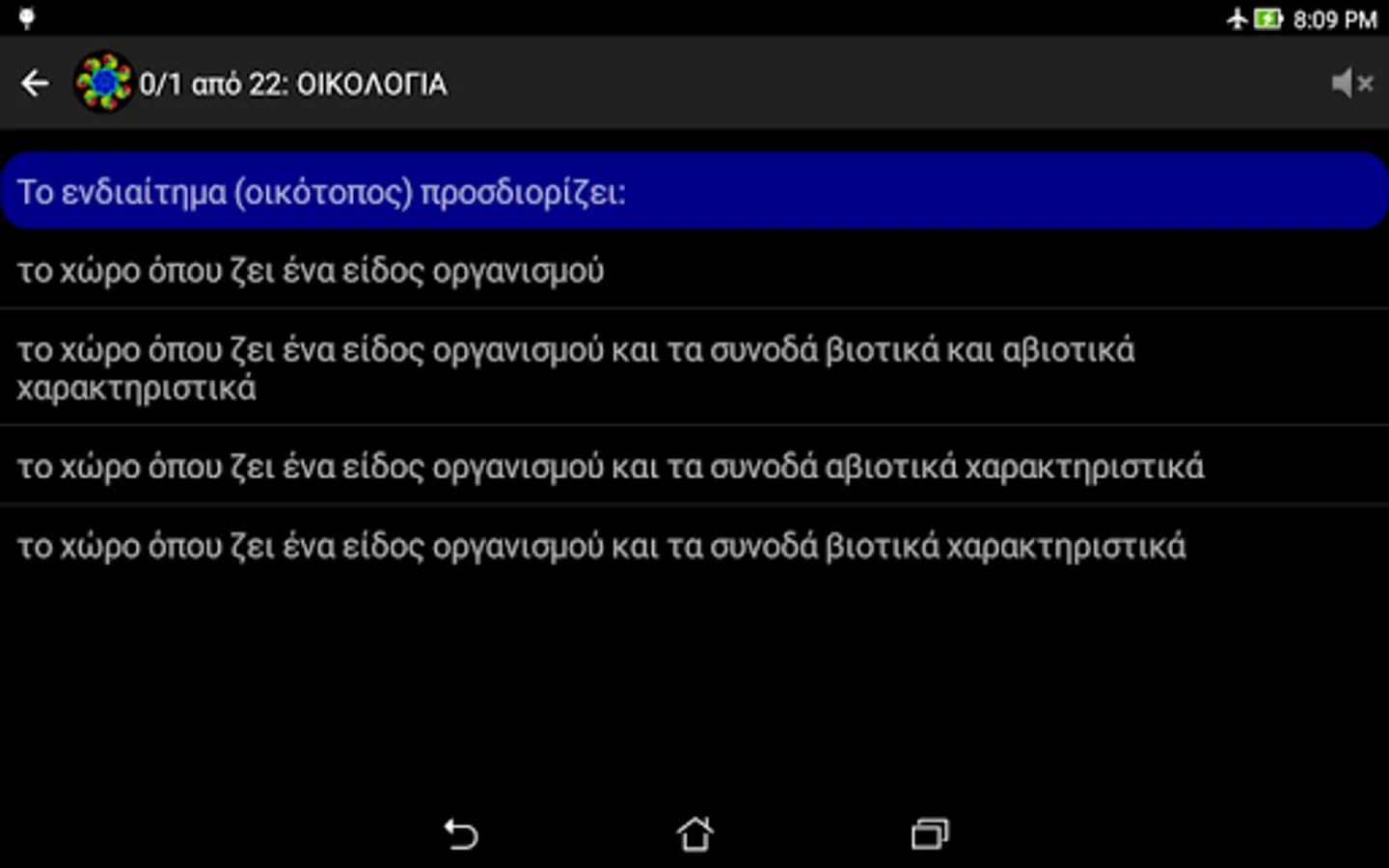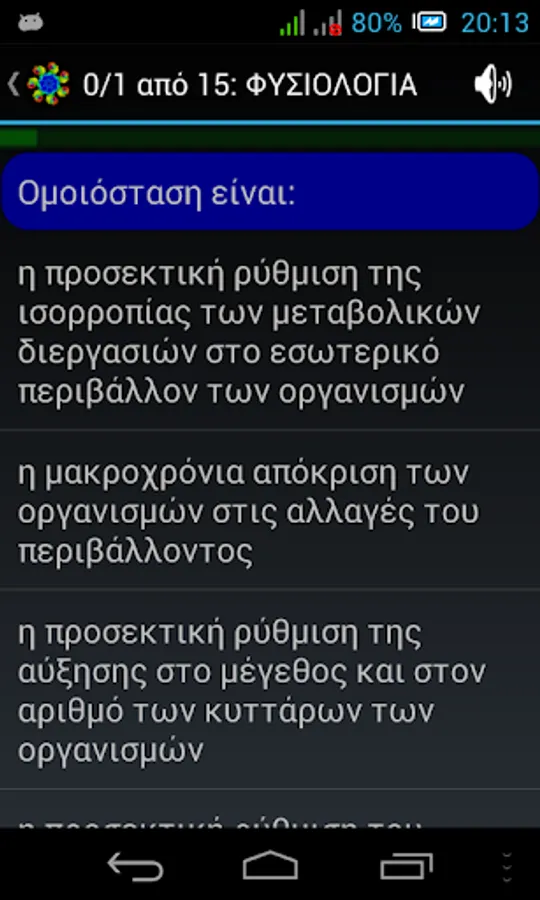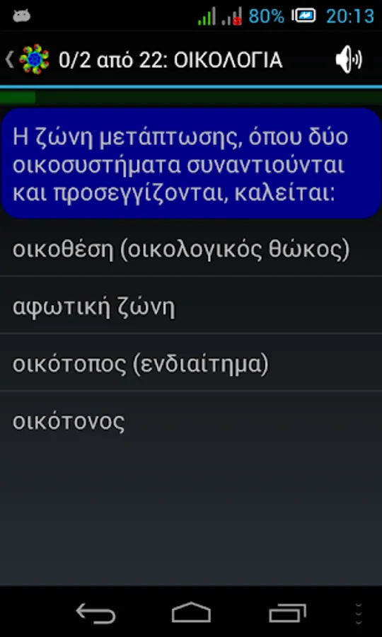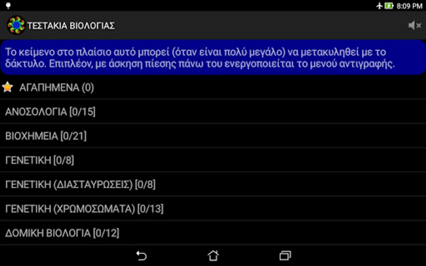 NOTE: In case of wrong answer, the application is designed NOT to directly shows the correct. This is done deliberately so that the user can repeat the testaki and find himself the right answer. Furthermore, this process of the impetus given to consolidate best and the rest erotoapantiseis of each theme. For, as is well known, "Repetition, mother of all learning." (Actually learning you have two mothers: repetition and curiosity ^ _ ^).