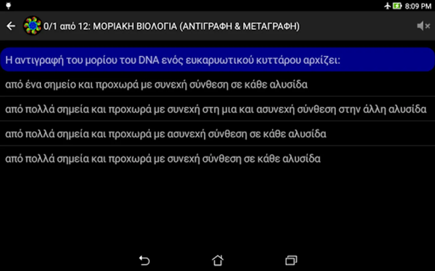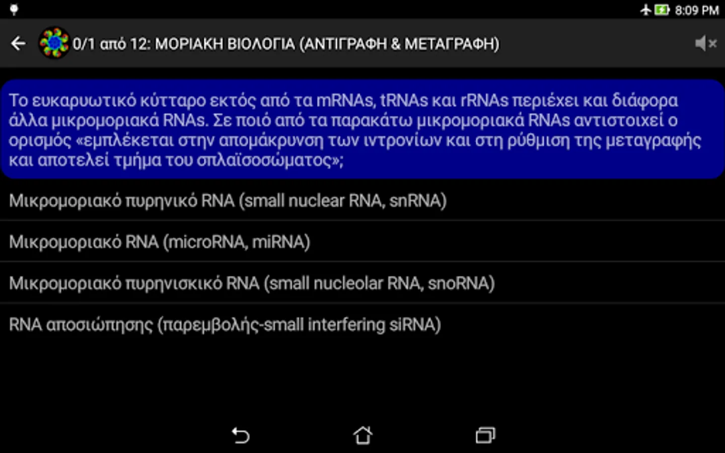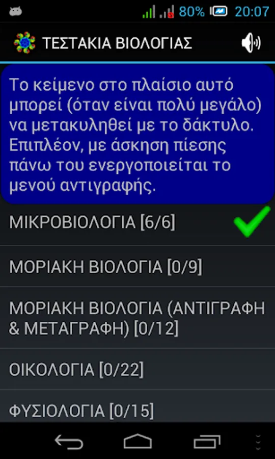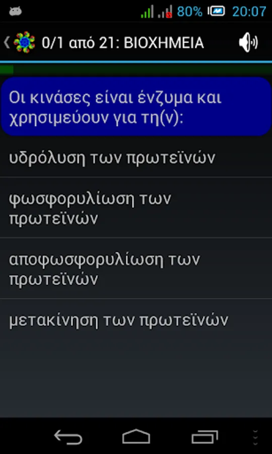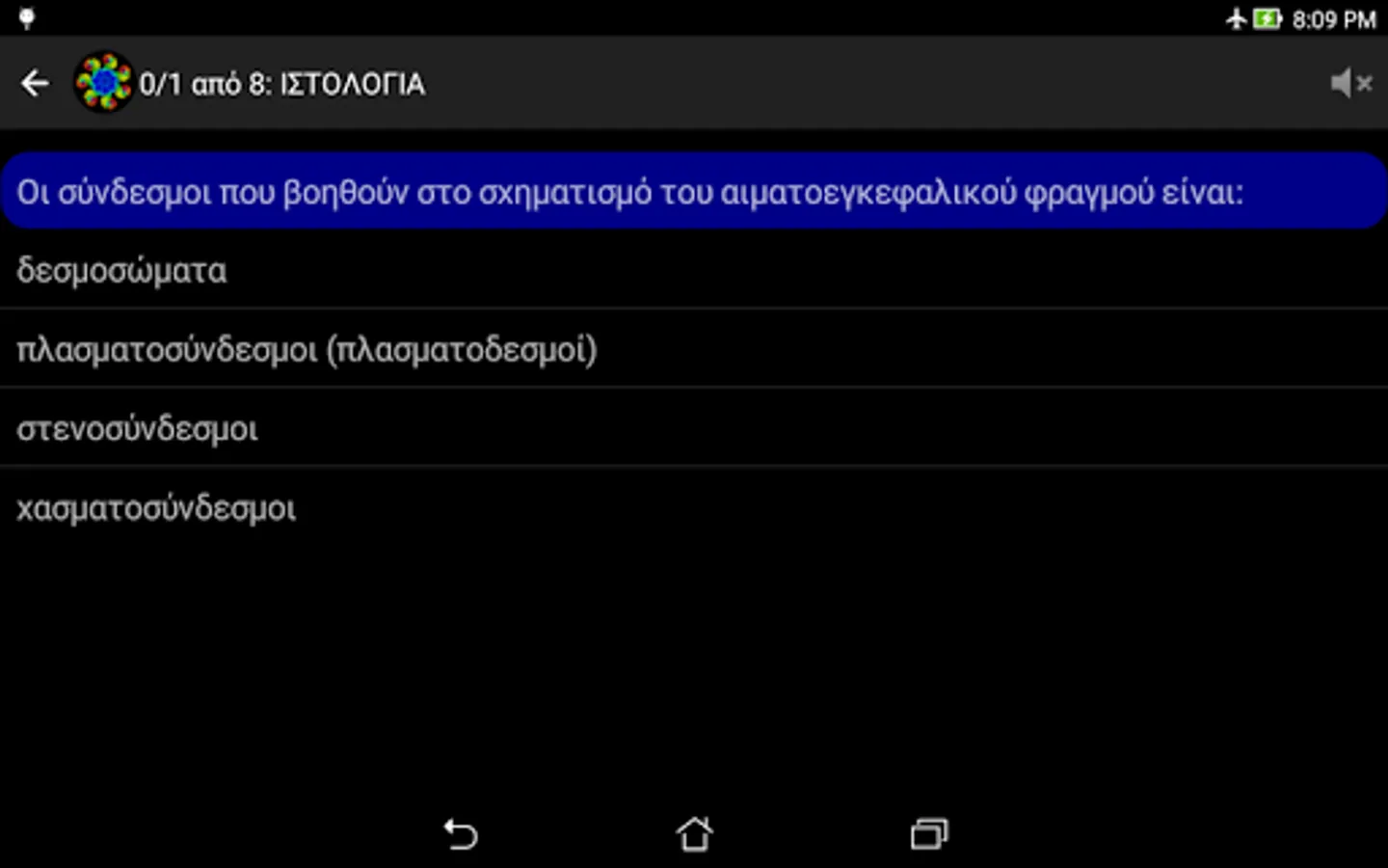 NOTE: In case of wrong answer, the application is designed NOT to directly shows the correct. This is done deliberately so that the user can repeat the testaki and find himself the right answer. Furthermore, this process of the impetus given to consolidate best and the rest erotoapantiseis of each theme. For, as is well known, "Repetition, mother of all learning." (Actually learning you have two mothers: repetition and curiosity ^ _ ^).