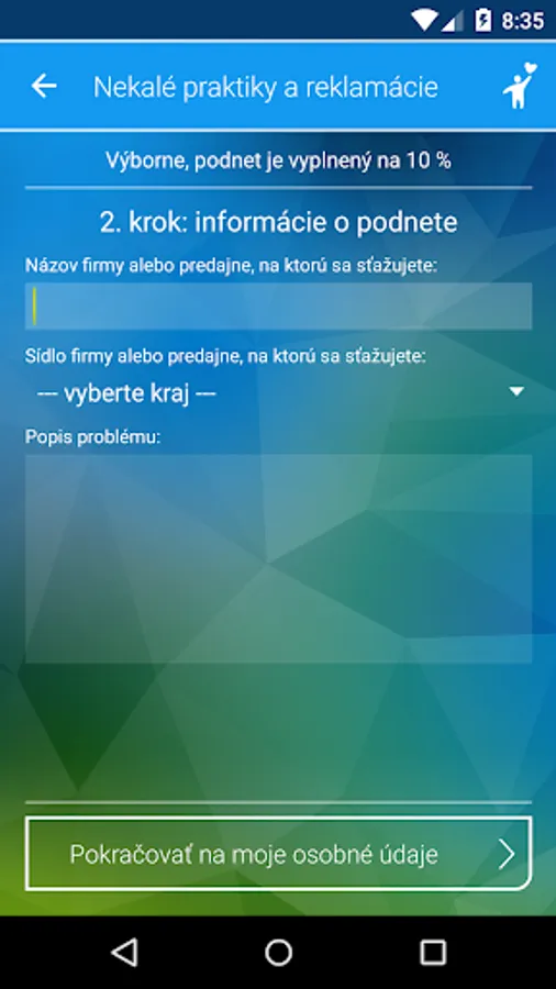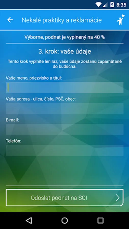 PodajPodnet! allows you to quickly and easily from your phone to bring actions on Slovak Trade Inspection and the State Veterinary and Food Administration. PodajPodnet! is an application for active consumers, which depends on the level of consumer services in Slovakia. Fill in the application data directly in the shop and give impetus to investigate immediately in case of deficiencies. Use PodajPodnet! field, thus contributing to better conditions for all consumers.