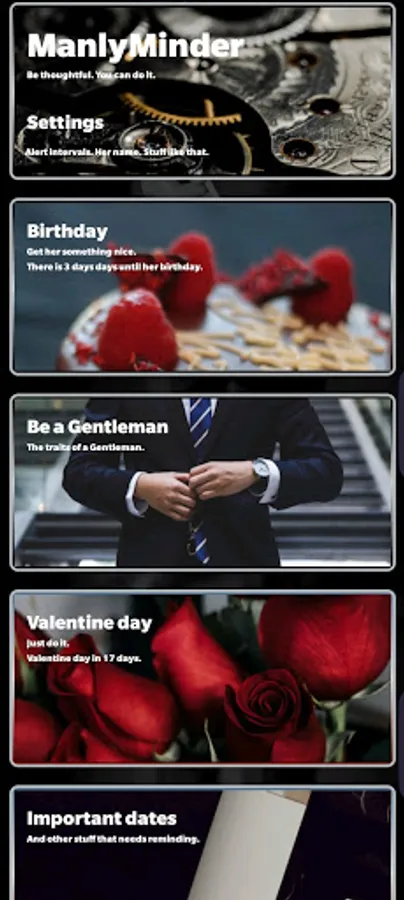 With ManlyMinder, you will be reminded of your birthday in good time to either find the right gift, or simply stay within budget.