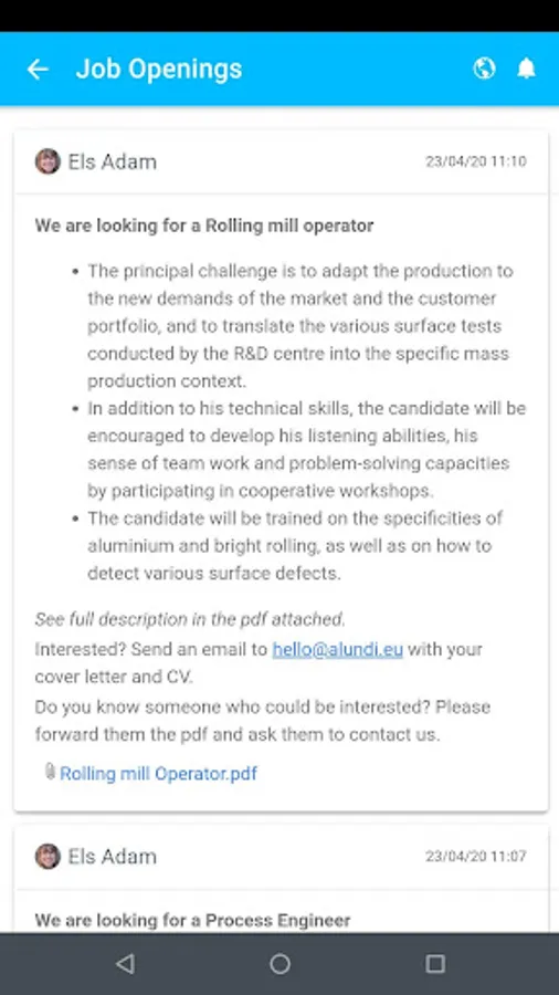 Alundi connects your entire workforce in one simple app. From the shop floor to the C-suite, Alundi keeps everyone connected. And there is no need for an email address – all you require is a smartphone with internet access.