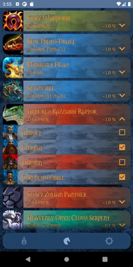 This tool is designed to help you keep track of daily and weekly mount lockouts in the game World of Warcraft. Add your character and get a checklist of every mount you don't have which can be farmed daily or weekly.