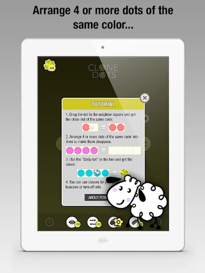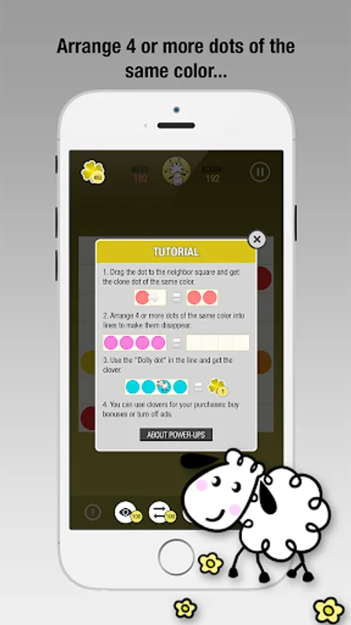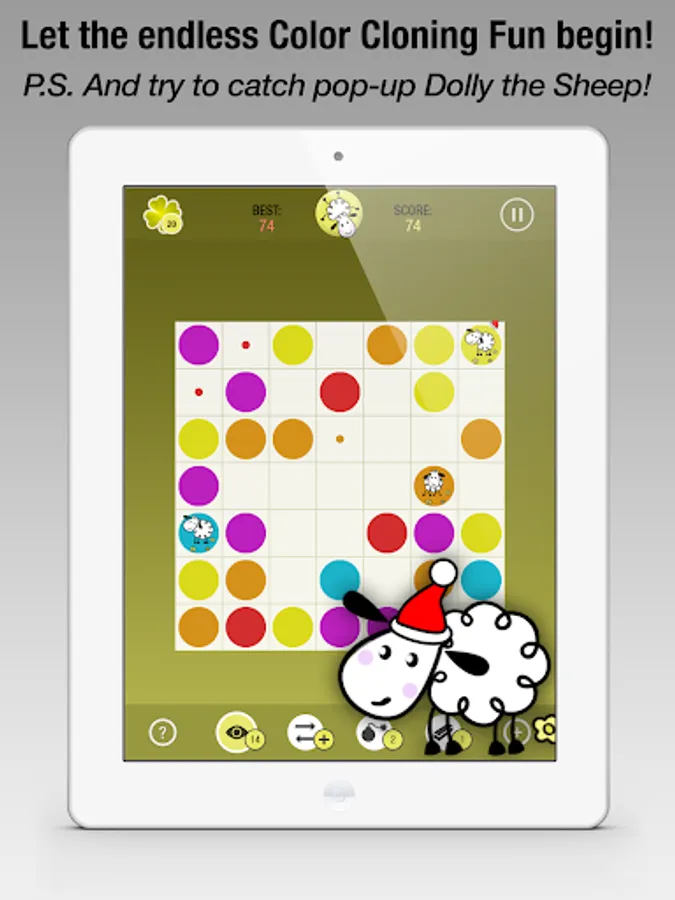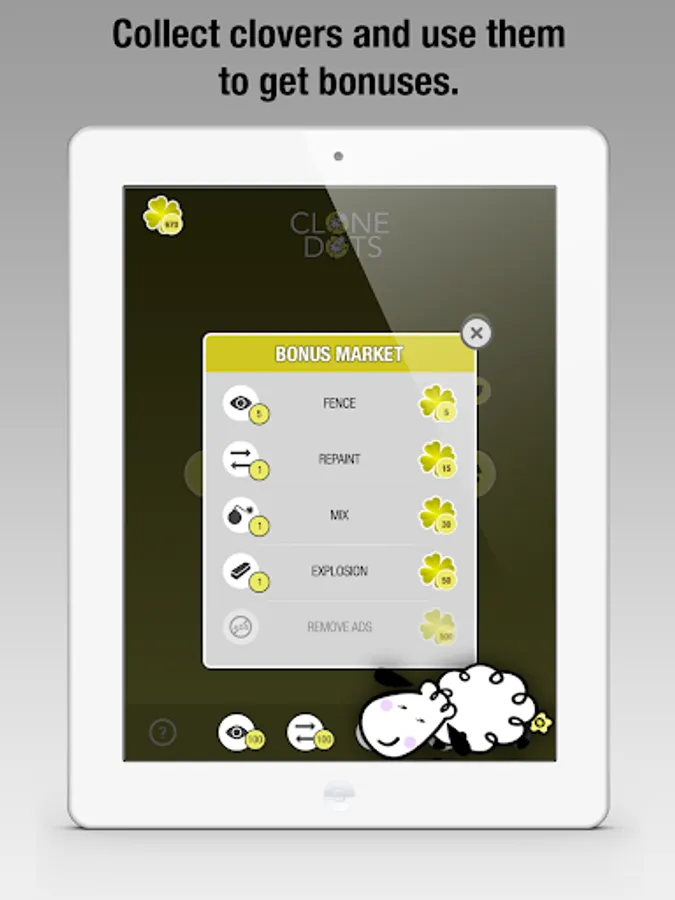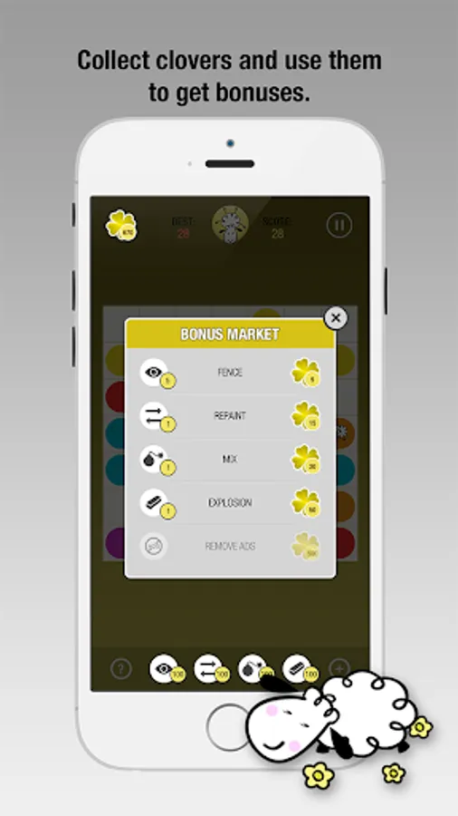 BUT! You also can use 4 bonuses to help you! Make more color lines with Dolly the Sheep and get clovers. Use clovers to buy bonuses.