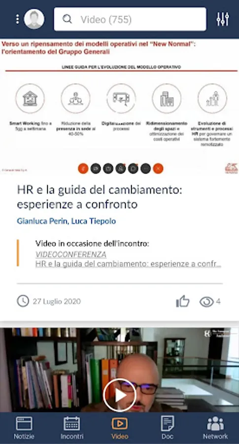 Once you log into the App you can easily surf the list of forthcoming meetings, with the details of date, place and attending speakers. There is also a list of videos, records and documents related to previous meetings. A scheme of all participants is available and it can be used to be always connected to other AP people. An intern search button let you find the topic you are more interested in using a selection of keywords.