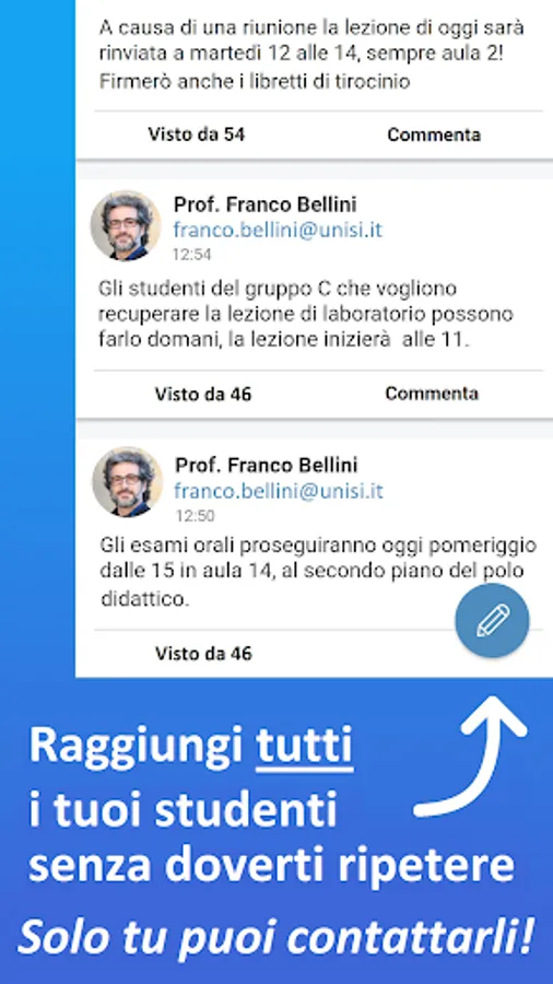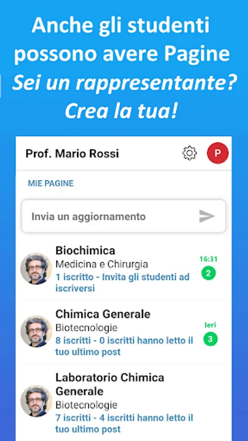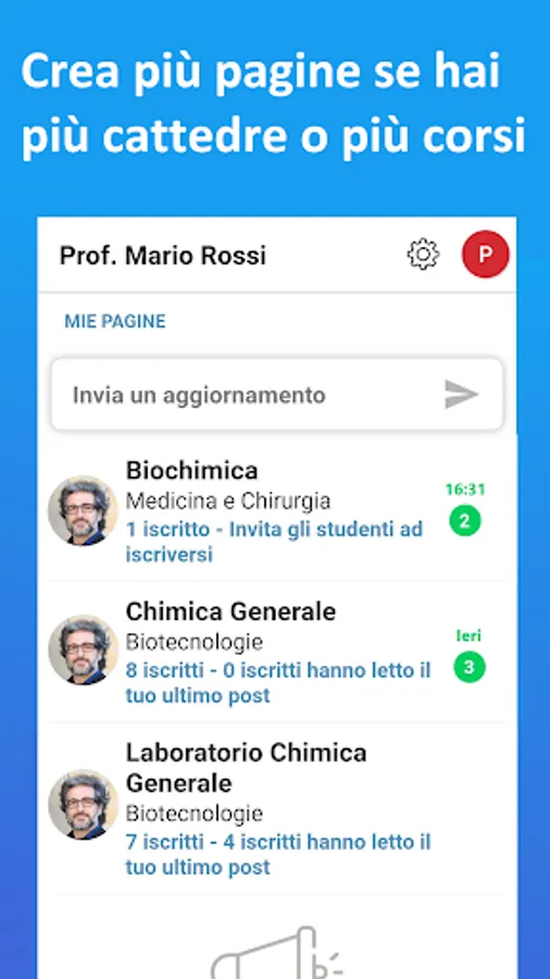 1 - Are you a teacher? On Alloro you have a space dedicated to the topic you are dealing with, where you can send information whenever you need it.
