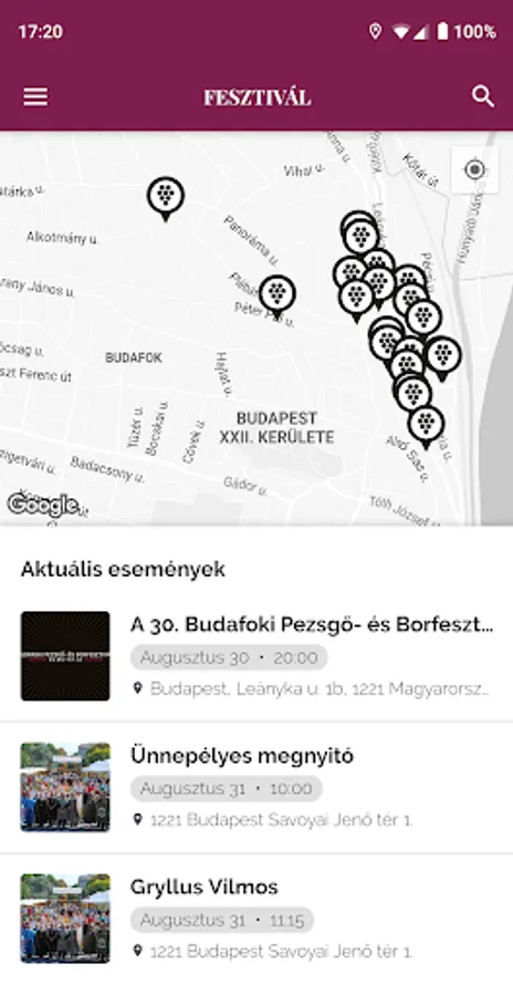 You can find information about the exhibitors, wineries, and performers involved with the Budafok Wine Festival and the Cellar Routes of Budafok and you can browse the detailed program list. You may also make a list of your favourite concerts and events. The app helps you navigate between the venues so you can easily find the programs and venues that interest you while you can also read news about the event. If you want, with the help of push notifications, we can notify you about changes in programs and news about the events. Moreover, you can choose your favourite events and get notifications before they start.