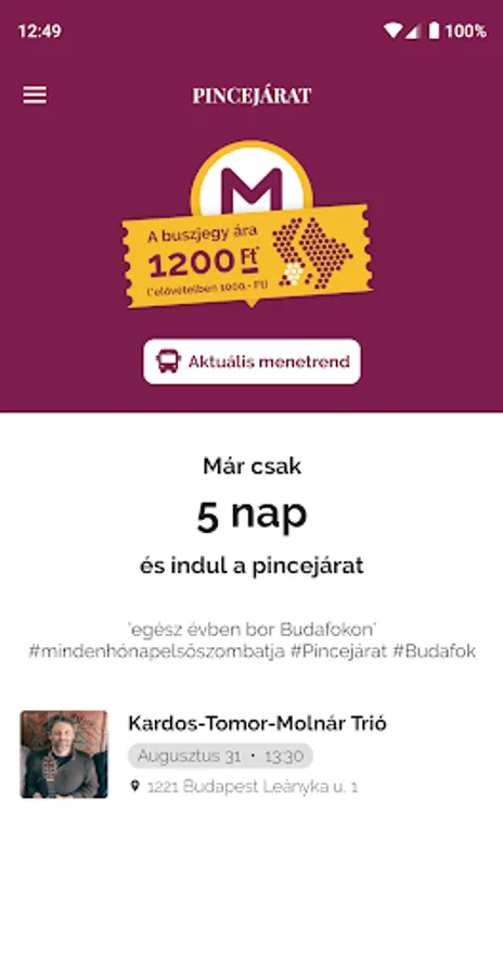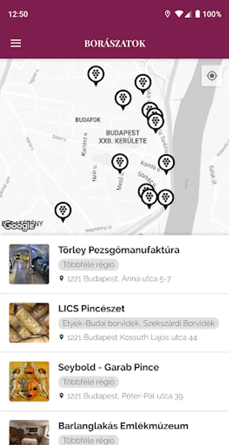 The official mobile application of the Budapest Wine District. The focus of the Wine District app is the Wine District of Budapest and related news, concerts, exhibitions, wineries in the district, wine cellars, and information about the Cellar Routes of Budafok and the Budafok Wine Festival.