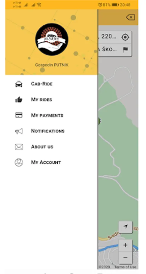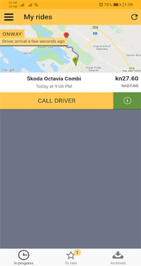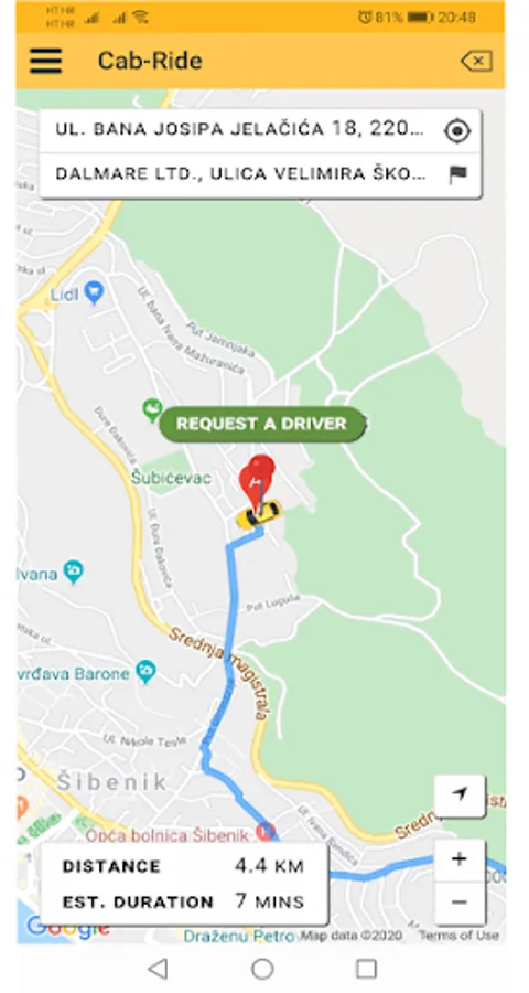 Application for ordering a safe and reliable taxi in the area of Šibenik.