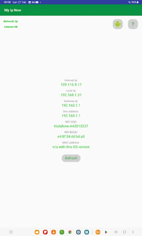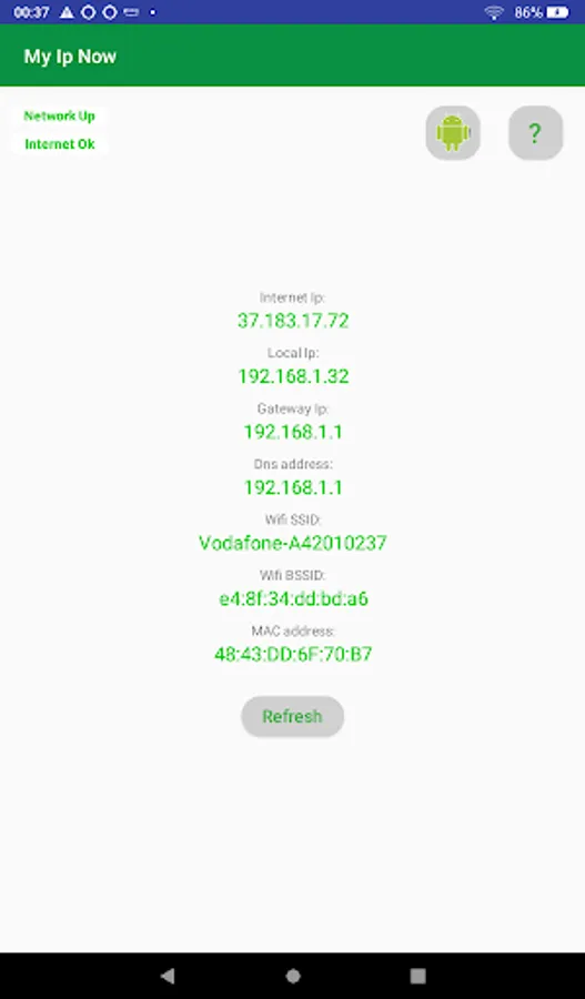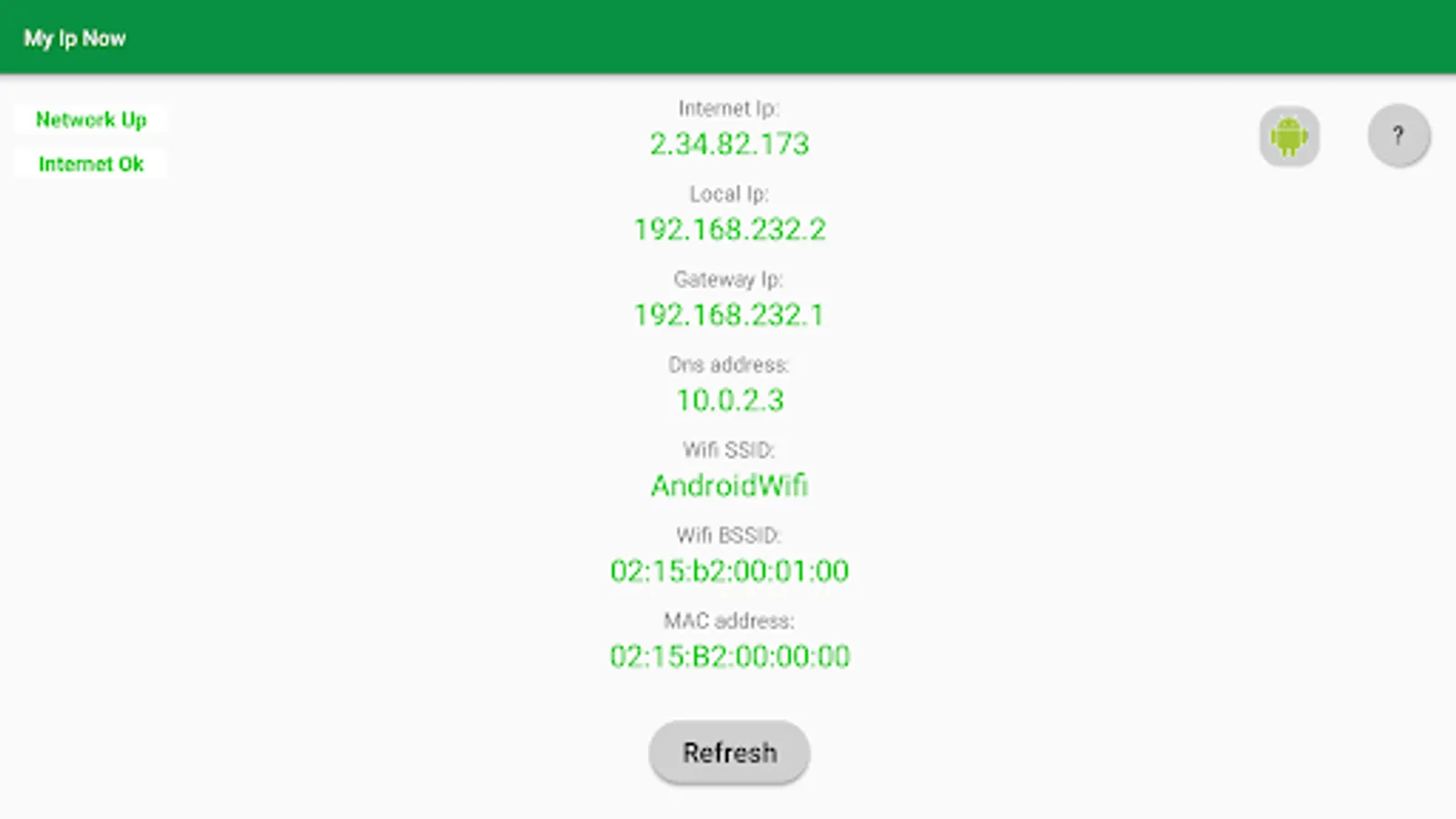 Wifi SSID, BSSID, MAC address (old Android versions) and Dns server are displayed too.