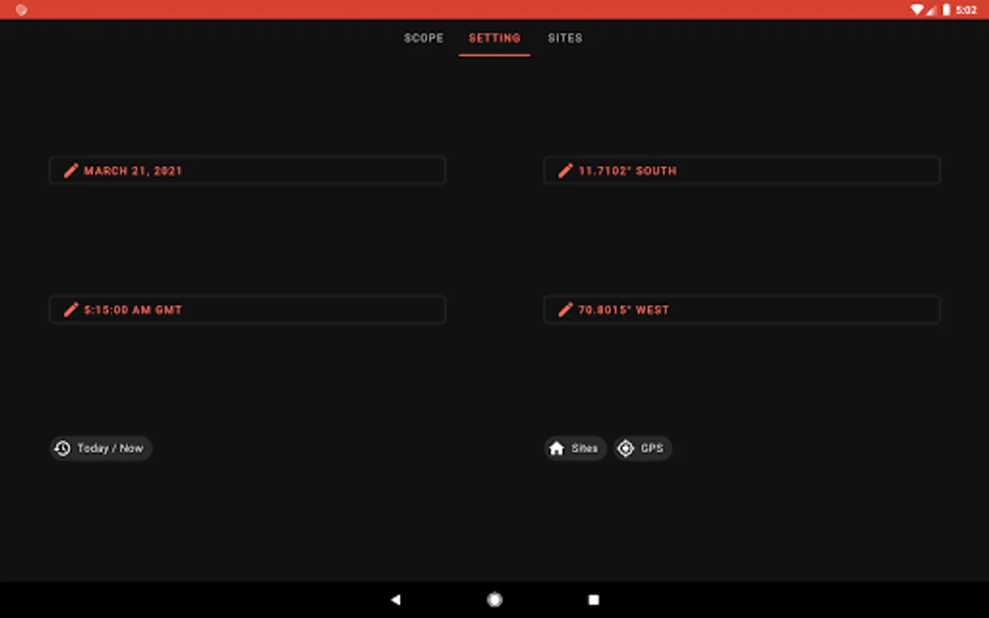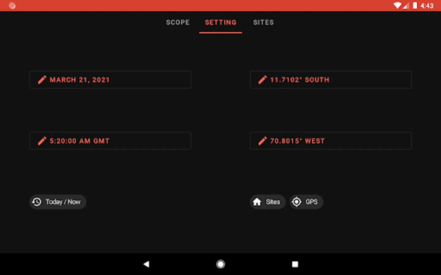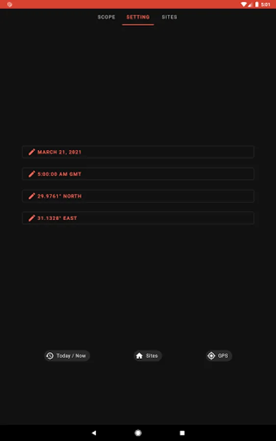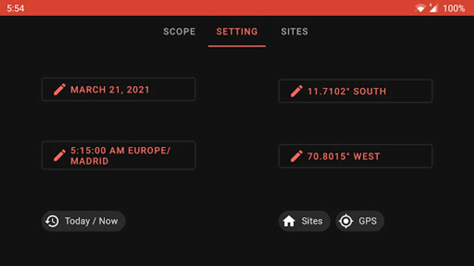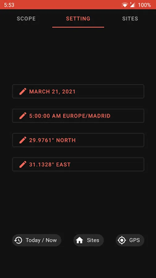 • Use your current time and location