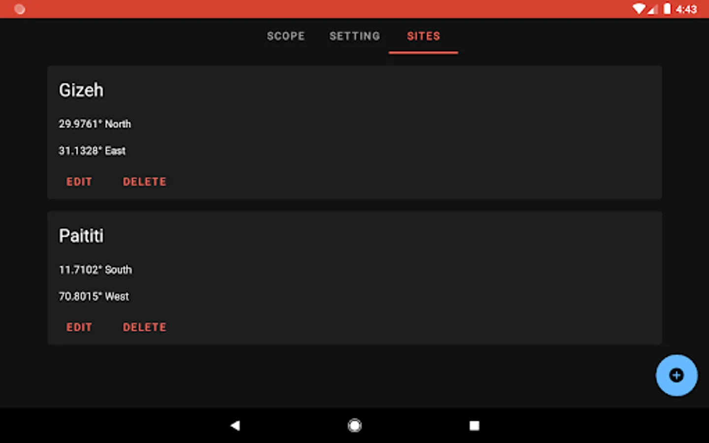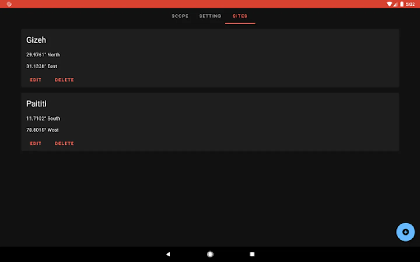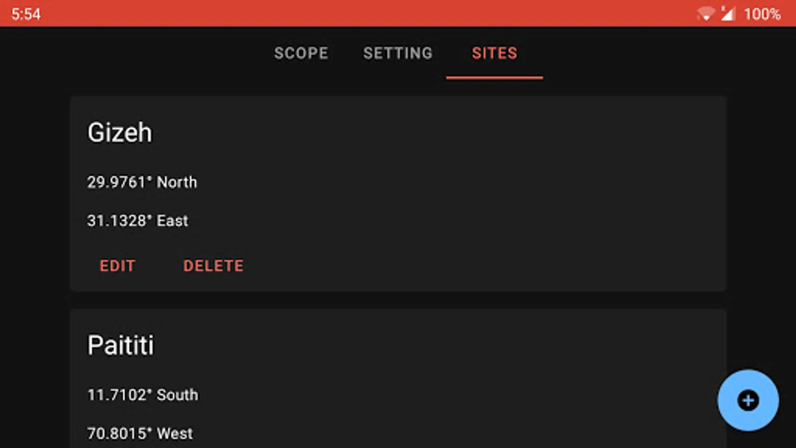 • Save your favourite observing locations