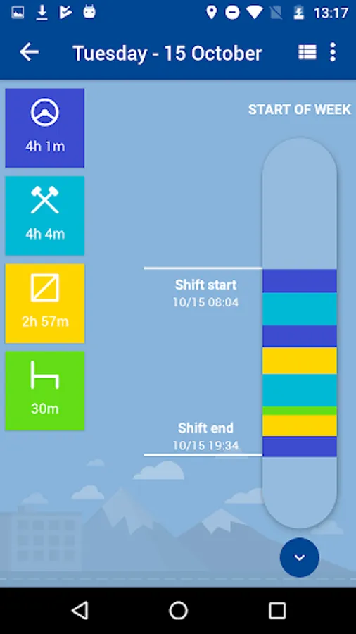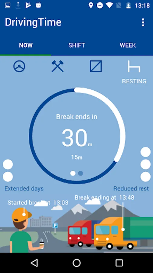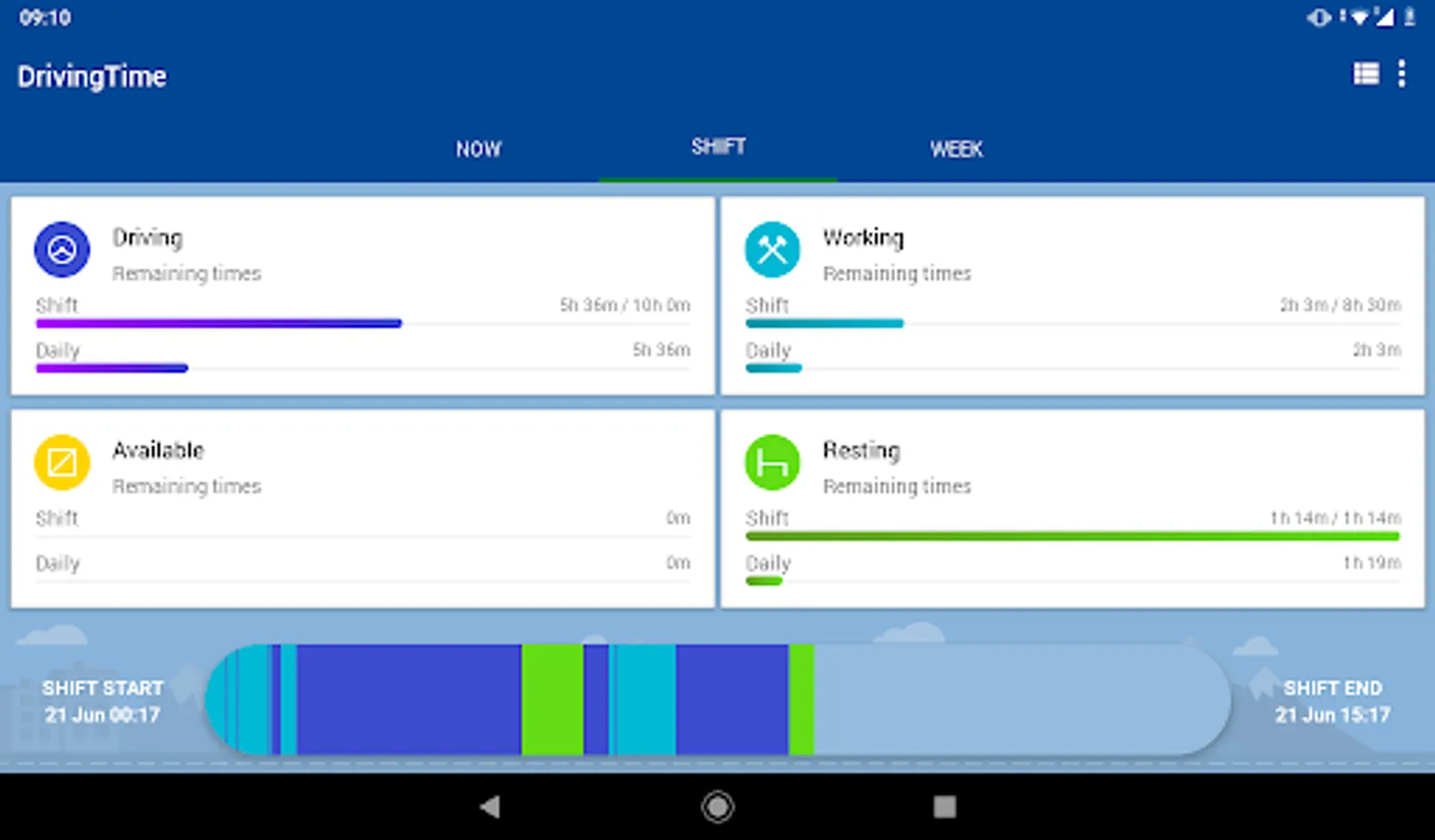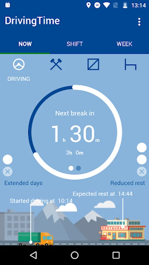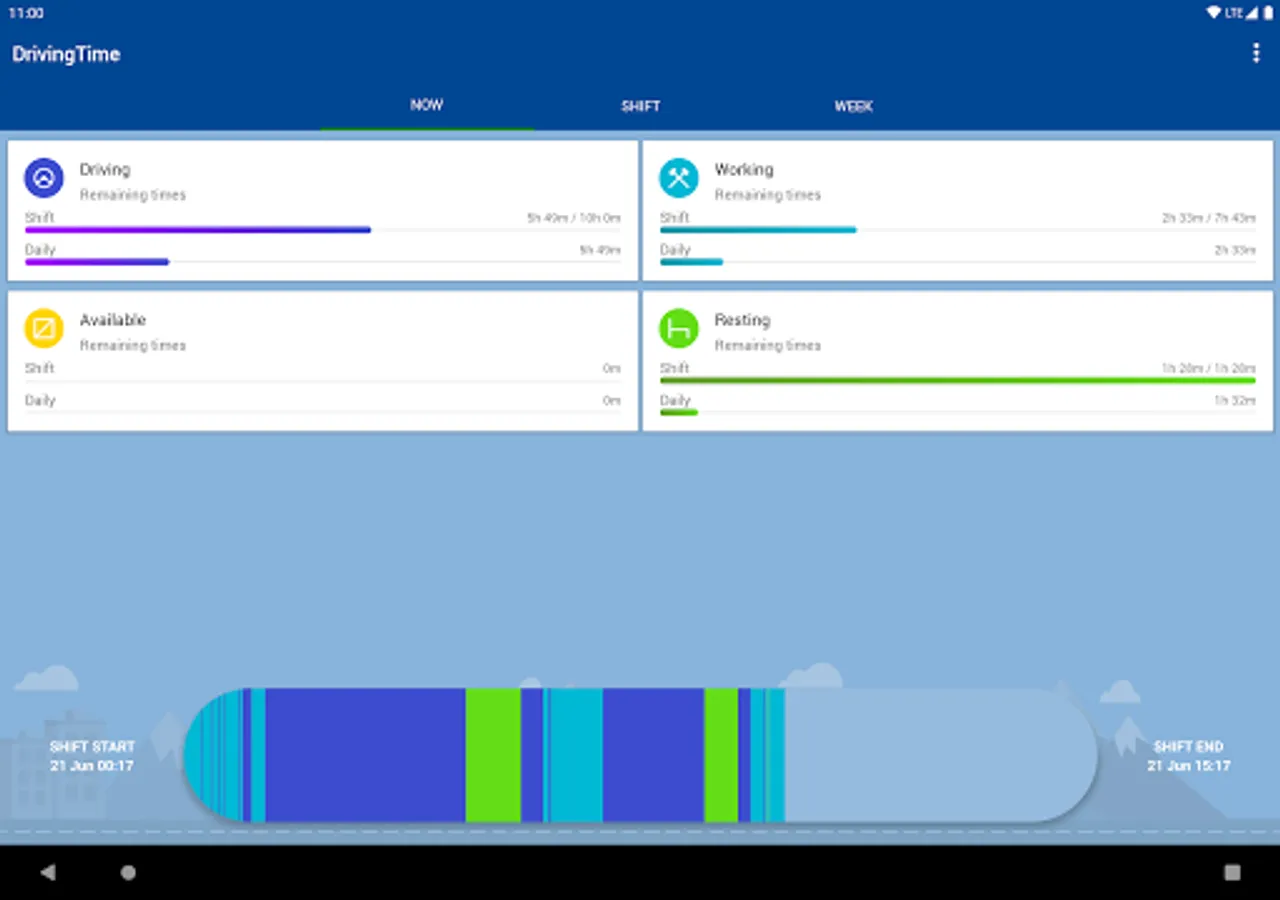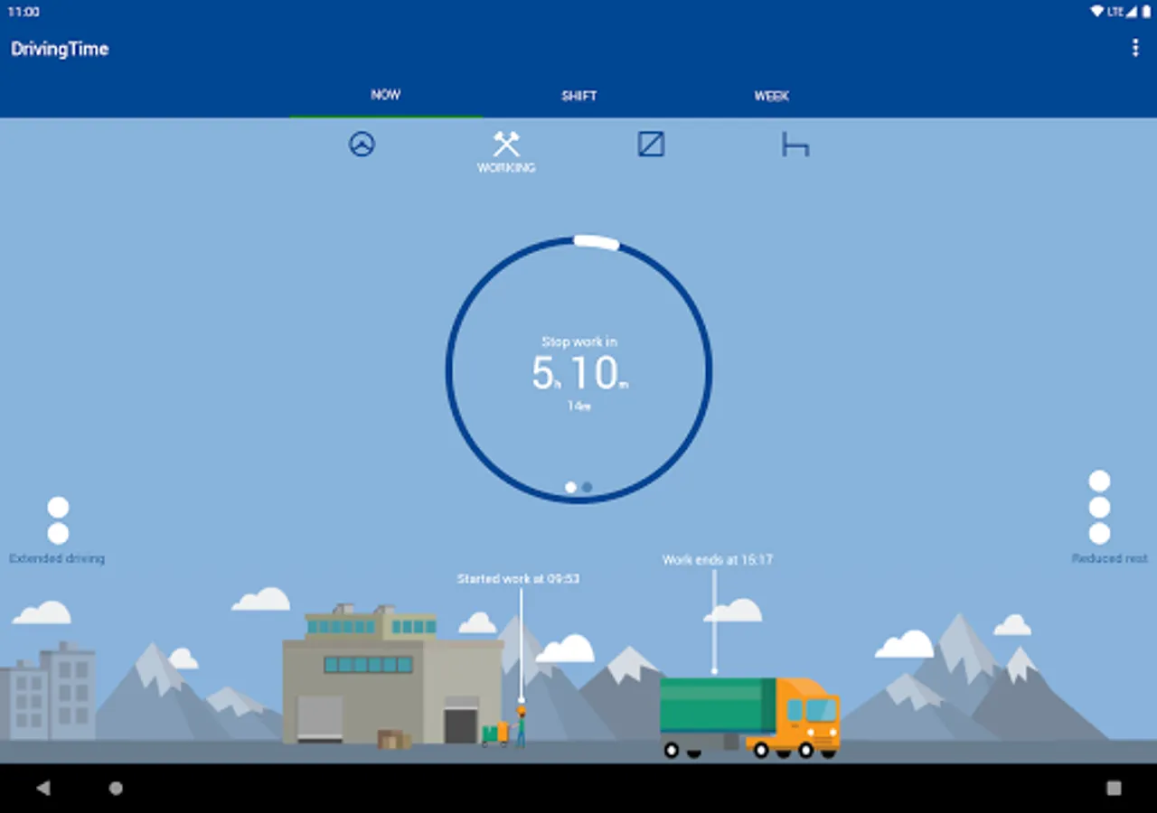 Easily see information on your driving and rest period duration, available remaining driving time, time remaining for your rest periods, when to end your shift, and your activities on a weekly basis