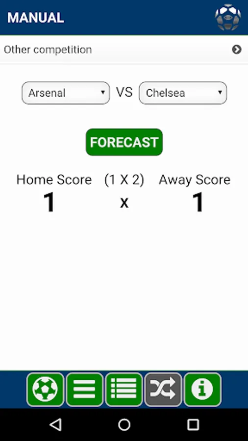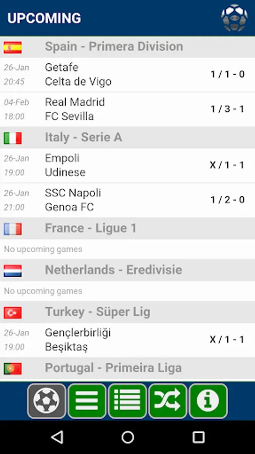 This app generates the results for the forthcoming match day, but there is also the possibility to choose your own match or the matches in the top leagues.