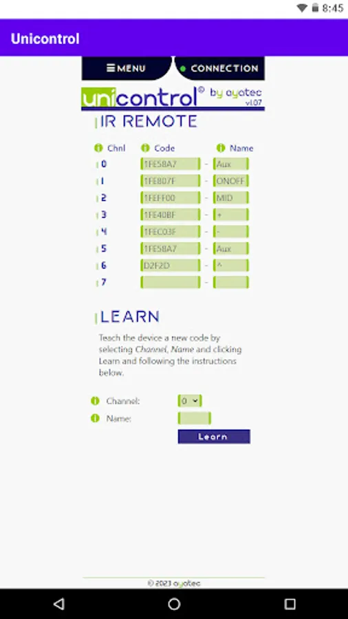 For a complete reference and user guide, please follow us here: https://unicontrol.ayatec.eu/userguide/?page=web_interface