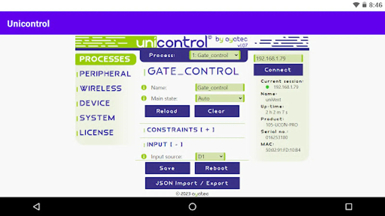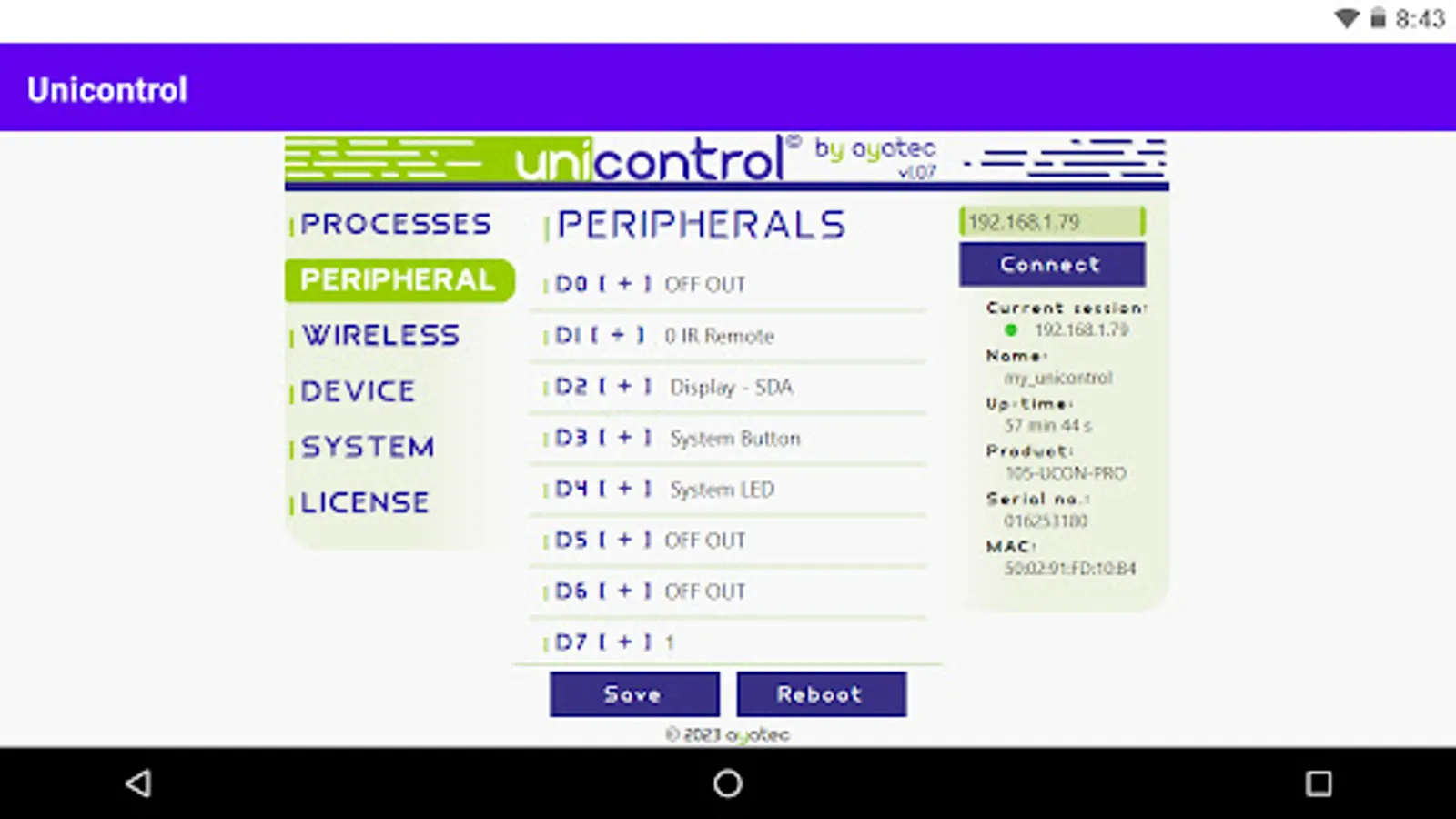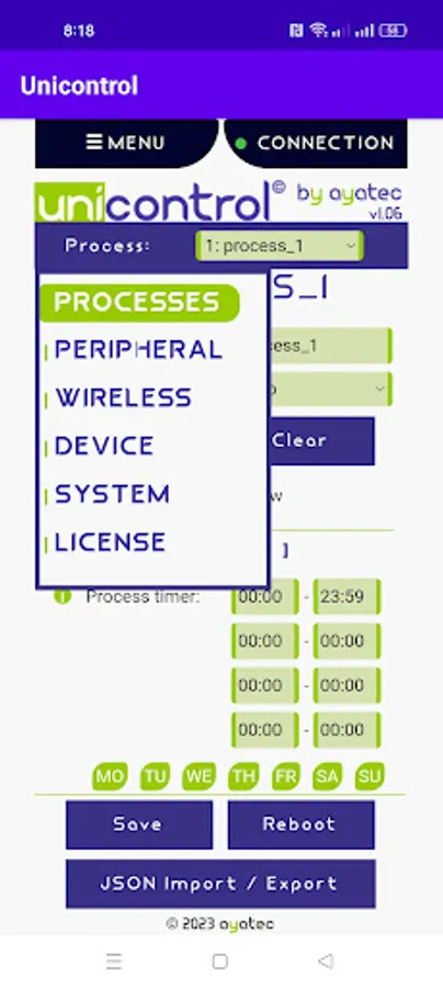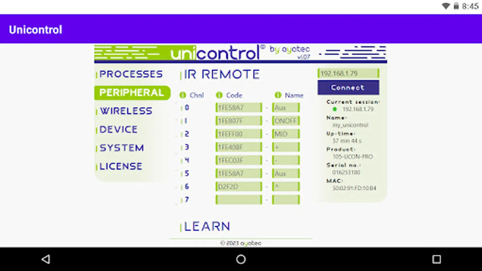 An Android version of the ayatec web-based interface serves as the primary tool for setting up and debugging unicontrol devices during installation.