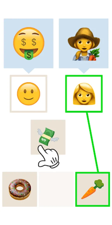 A new imagination game in which you need to select emoji by associations. Think and find the idea of each puzzle. Just tap one by one on the elements from different option complete the puzzle. Or drag to draw a line and connect elements from different options. If you correctly connect all the elements, you pass the level. Harder than you think!