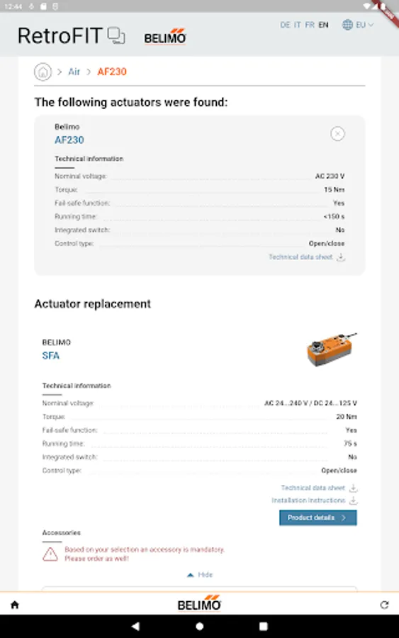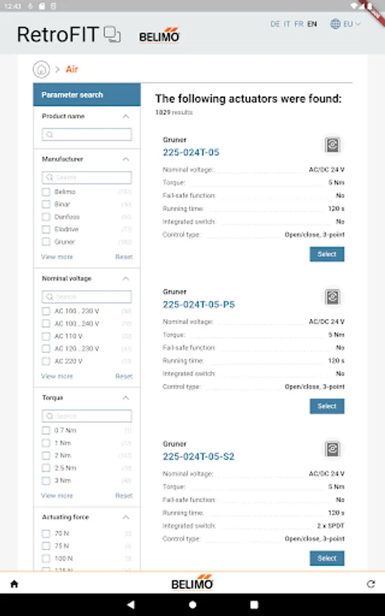 The new Belimo RetroFIT+ App allows you to easily find the best fitting HVAC (Heating, Ventilation and Air Conditioning) Belimo replacement with innovative technology for your old or damaged actuator.