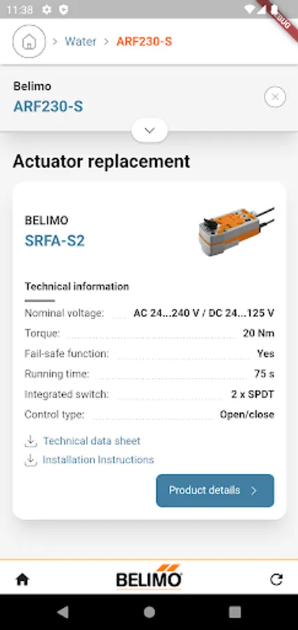 Whether Air applications or Water solutions if you are searching for a modernization or a replacement of your installation, you will quickly find the actuator (Globe valve actuator, rotary valve actuator,..) of Belimo which covers your needs and offers you best quality with high performance. The complete sensor range from Belimo is integrated in the App.
