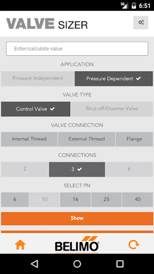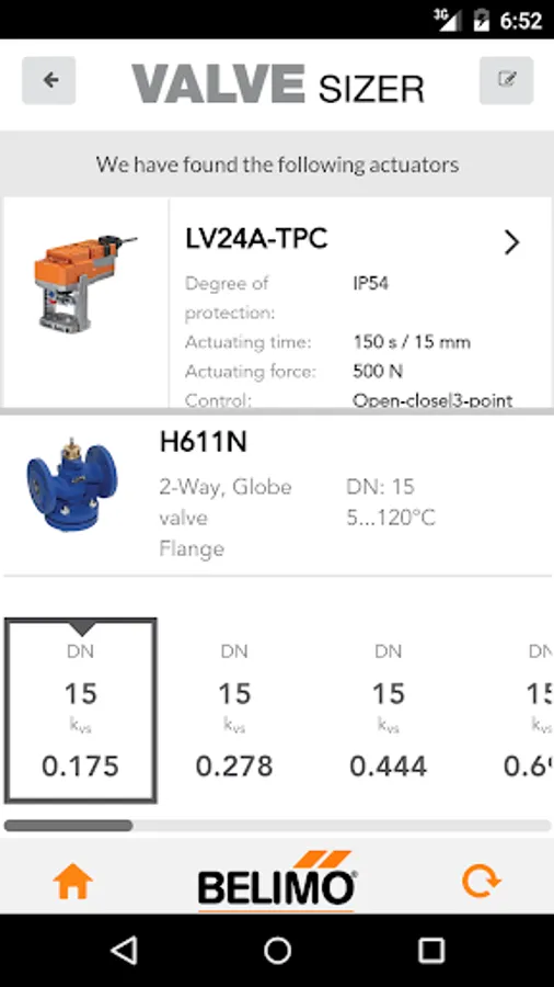 The BELIMO Valve Sizer App for a quick and easy selection of valves.