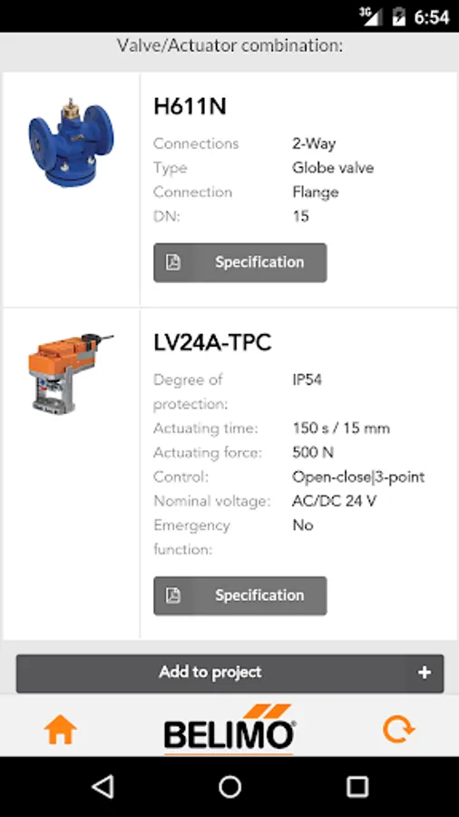 Define the flow and the differential pressure, select characteristics like e.g. connection type, DN size or PN value and choose the best fitting actuator. ( Standard actuator, fast running actuator or actuator with emergency control function). This App and all the datasheets are available in both German and English languages.