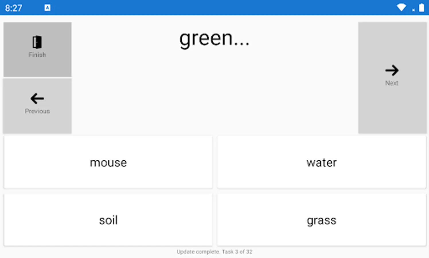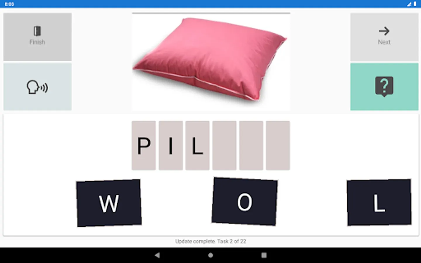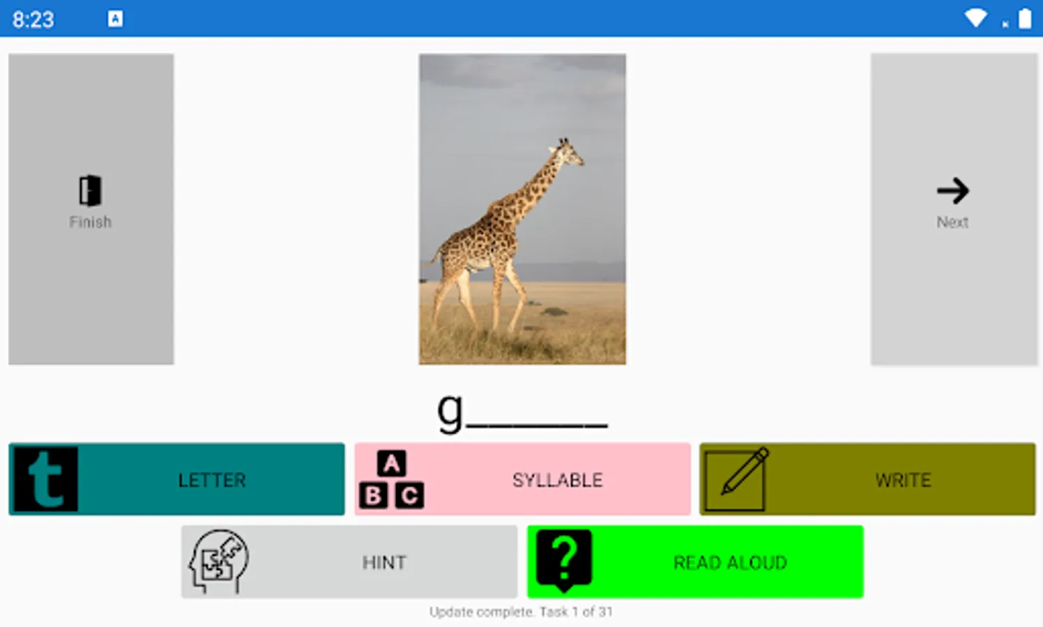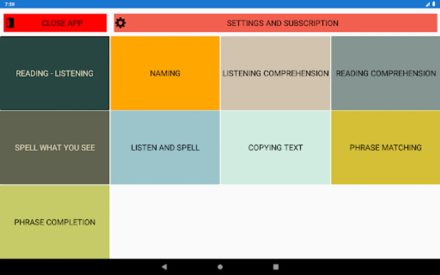 Extremely simple to use. Contains frequently updated and extended categorized naming, comprehension, reading and spelling tasks with pictures, text, and speech.
