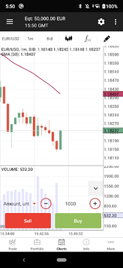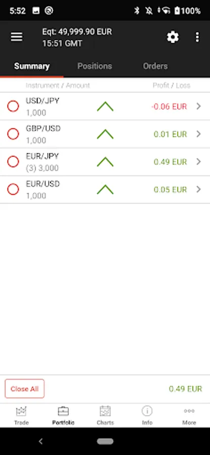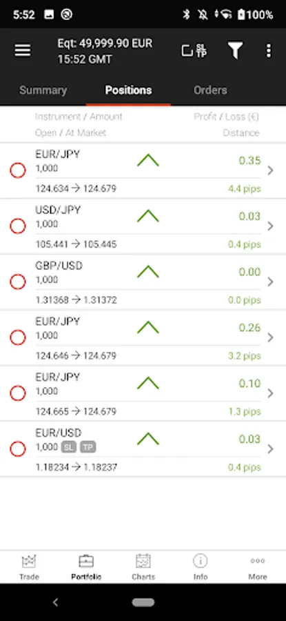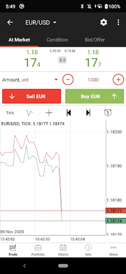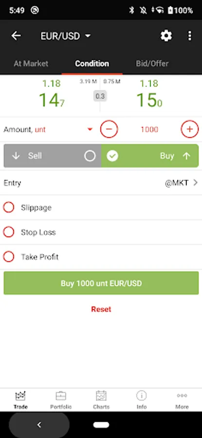 In order to let you trade your account from anywhere, app supports Edge/3G/Wi-Fi connection types with an automatic connection control system that adapts data flow size depending on the connection speed.