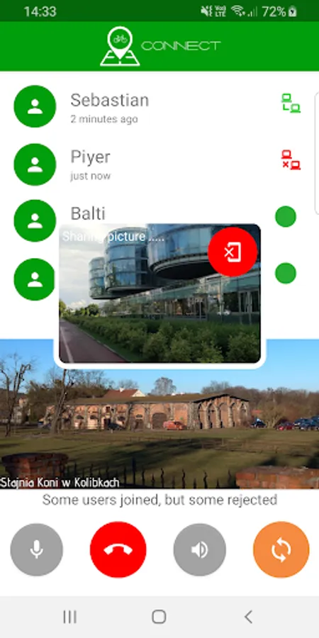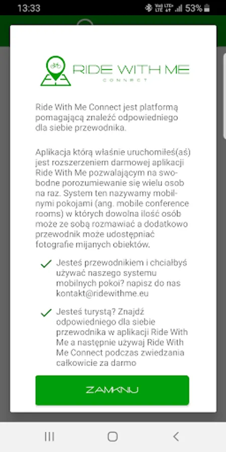 Aplikacja Ride With Me Connect jest rozszerzeniem darmowej aplikacji Ride With Me pozwalającym na swobodne porozumiewanie się wielu osób na raz. System ten nazywamy mobilnymi pokojami (ang. mobile conference rooms) w których dowolna ilość osób może ze sobą rozmawiać a dodatkowo przewodnik może udostępniać fotografie mijanych obiektów.