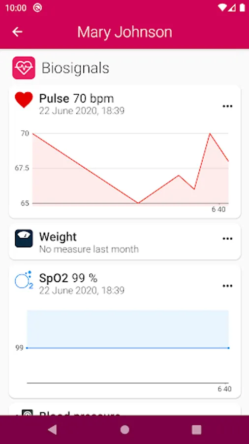 - connection to wireless sensors to record measurements of vital signs, such as blood oxygen saturation, blood glucose levels or blood pressure, according to the schedule and recording parameters that have been set by the user’s physician